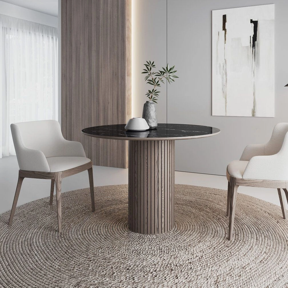 Стол круглый Denver 100, керамика глянцевая / опора дерево