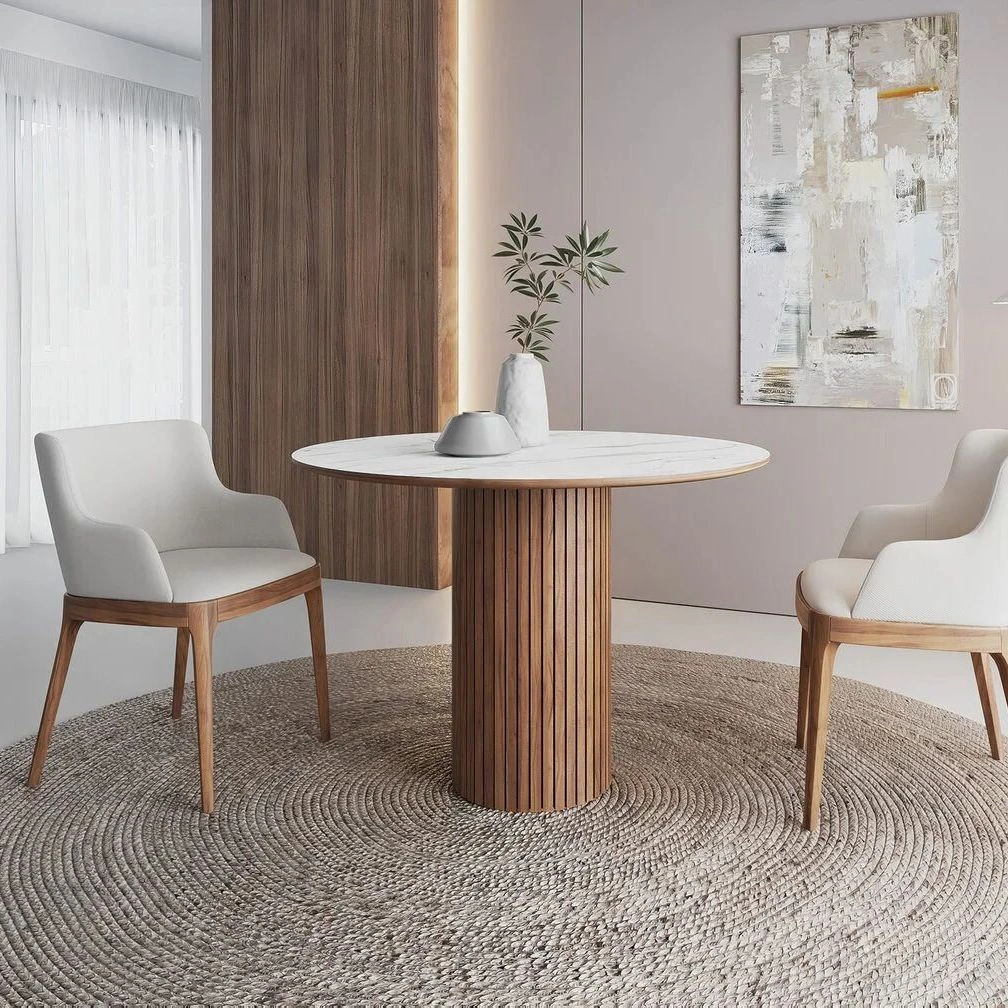 Стол круглый Denver 120, керамика матовая / опора дерево