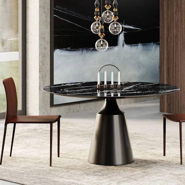 Стол круглый Lucas 120, керамика глянцевая, черная