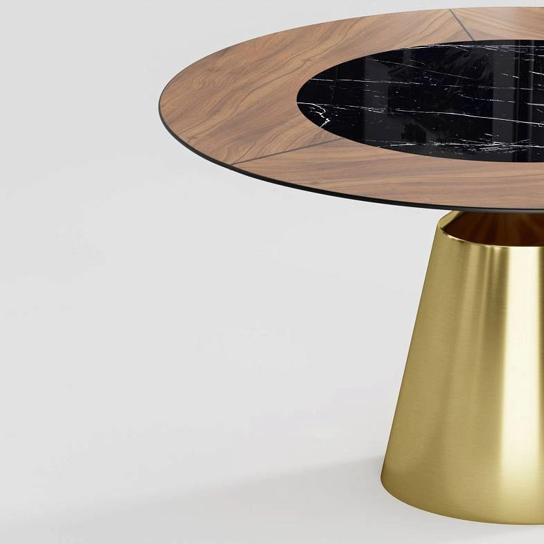 Стол круглый Lucas 140, шпон, керамика глянцевая, черная