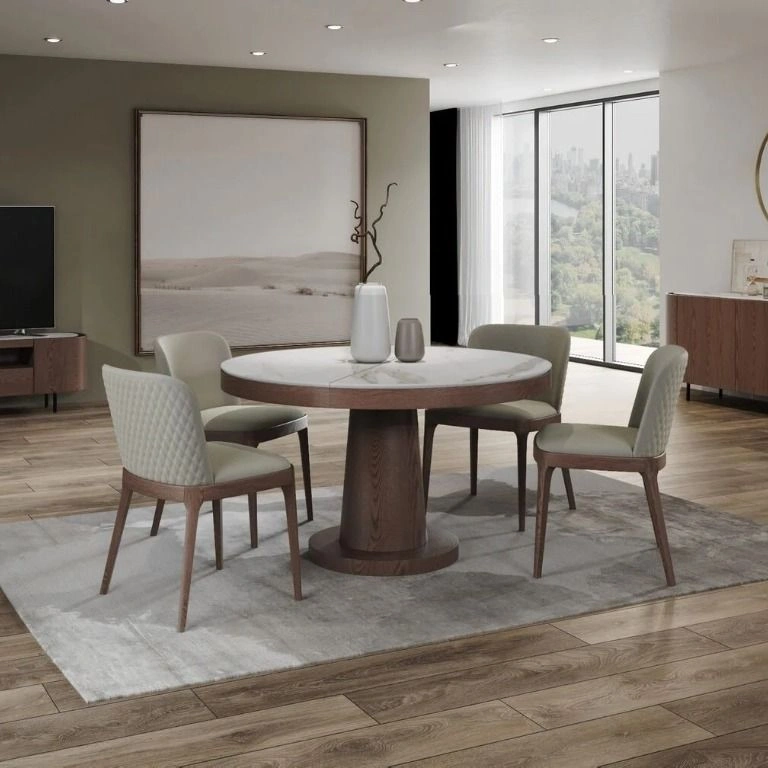 Стол круглый обеденный Bilbo (100+40), керамика матовая белая