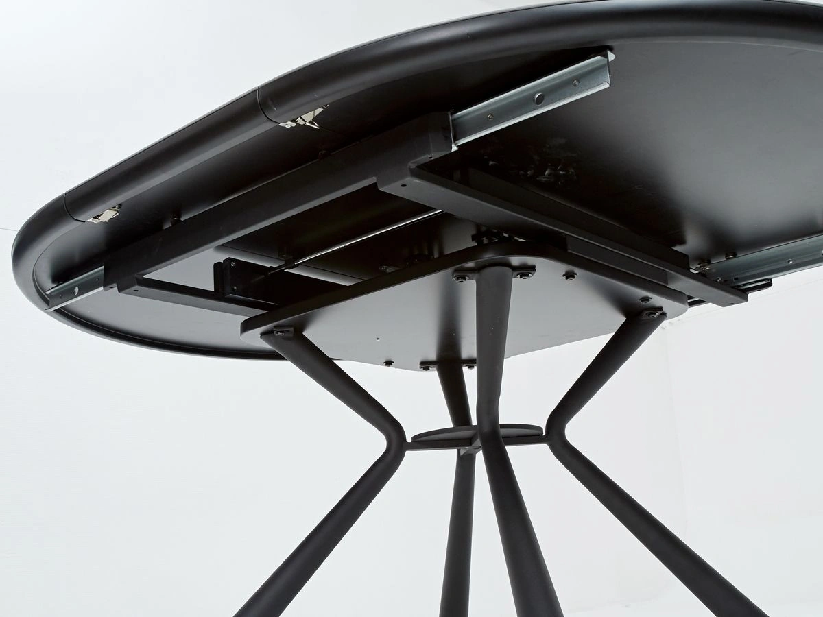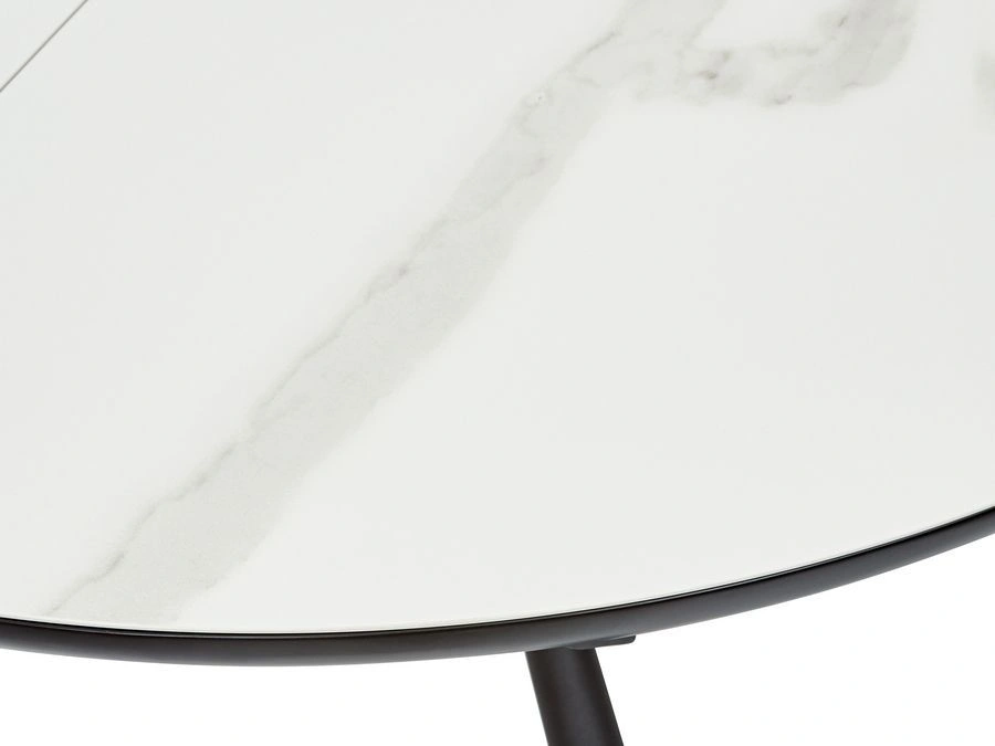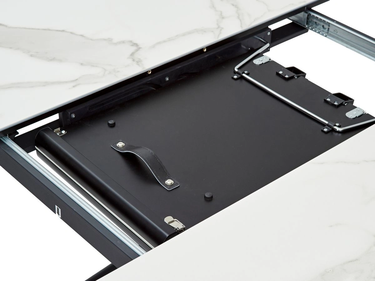 ХранениеСтолешница - испанская керамика, цвет "белый мрамор", + МДФ, окрашенный в черный цвет. Удлиняющая вставка с керамикой "бабочка" хранится под столешницей.