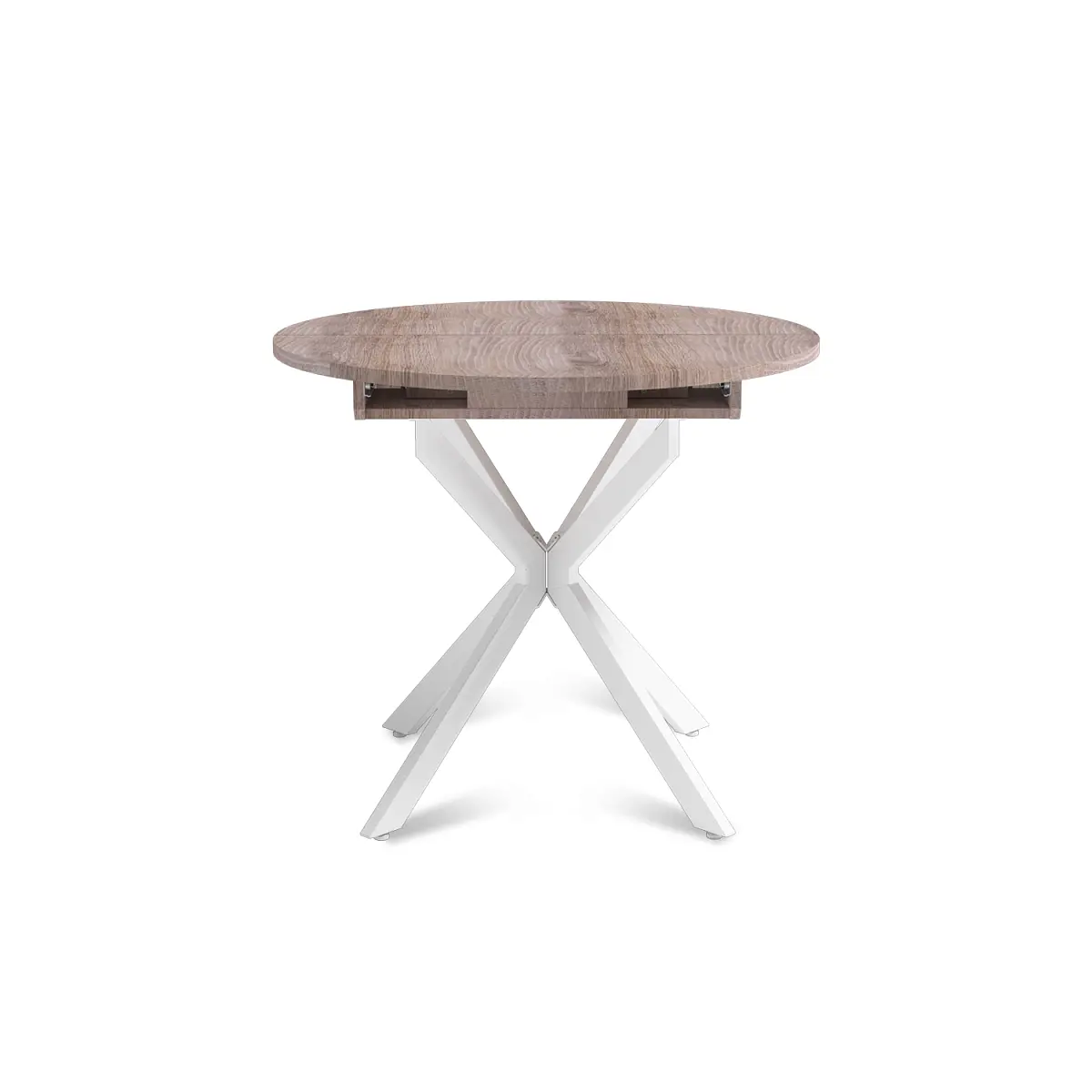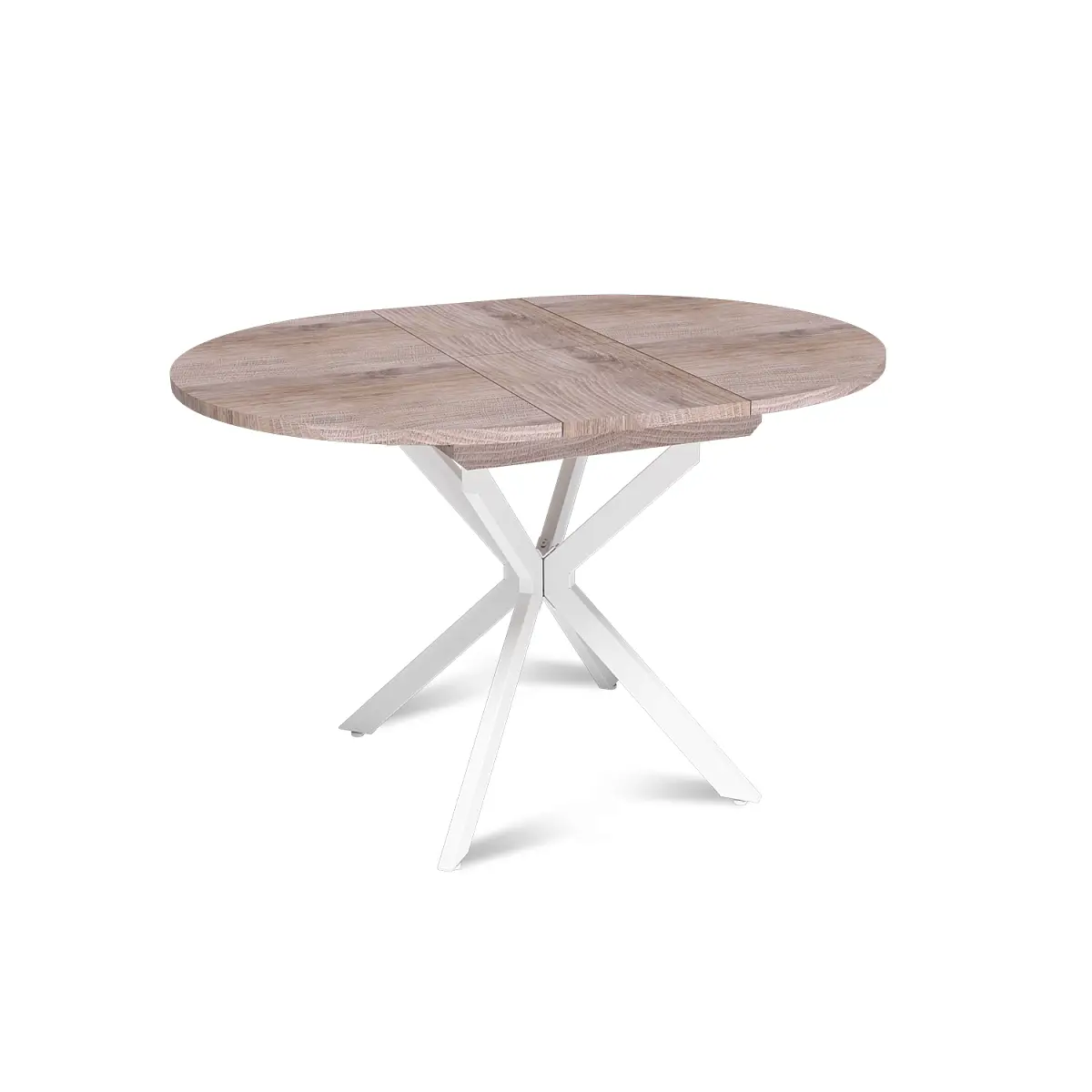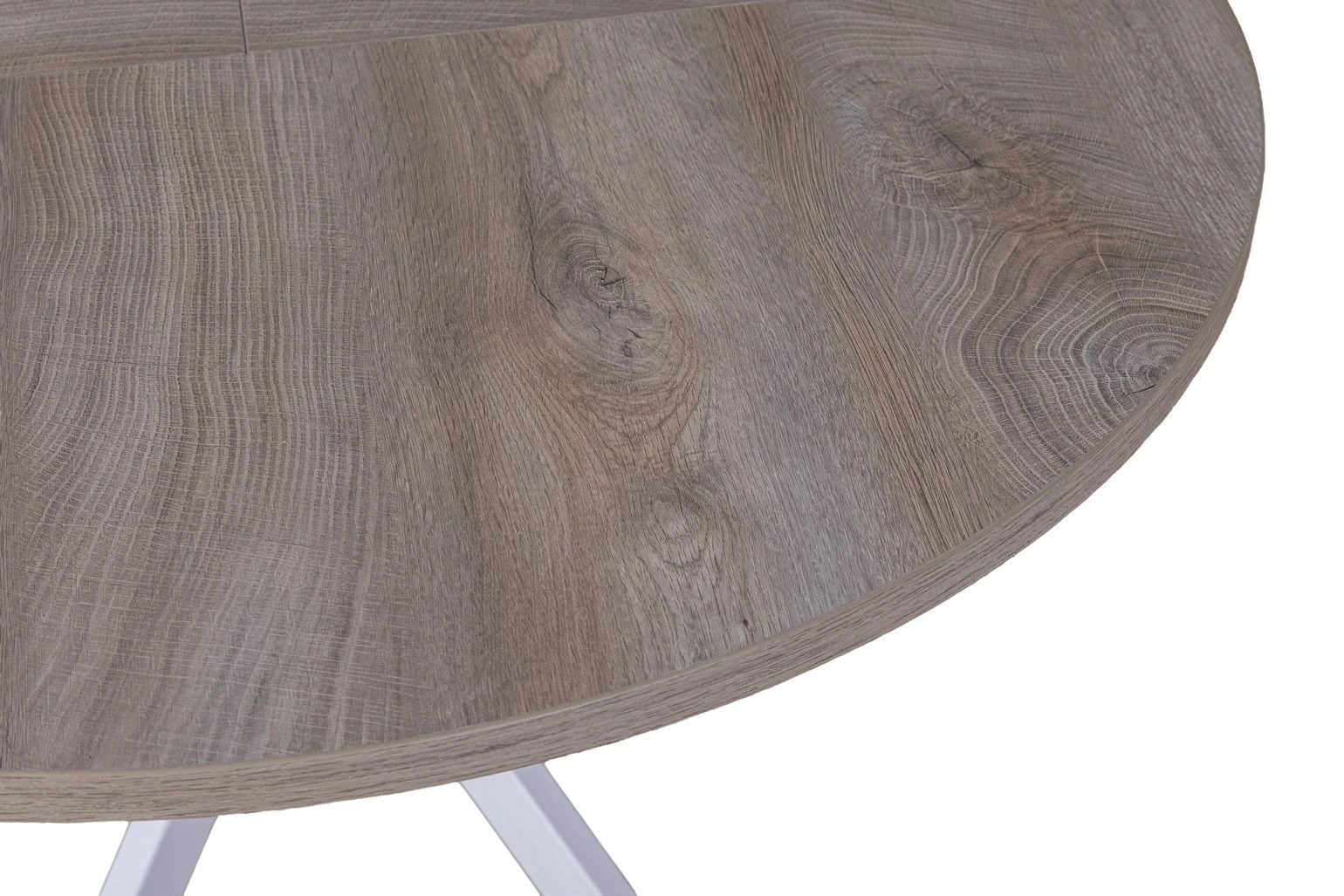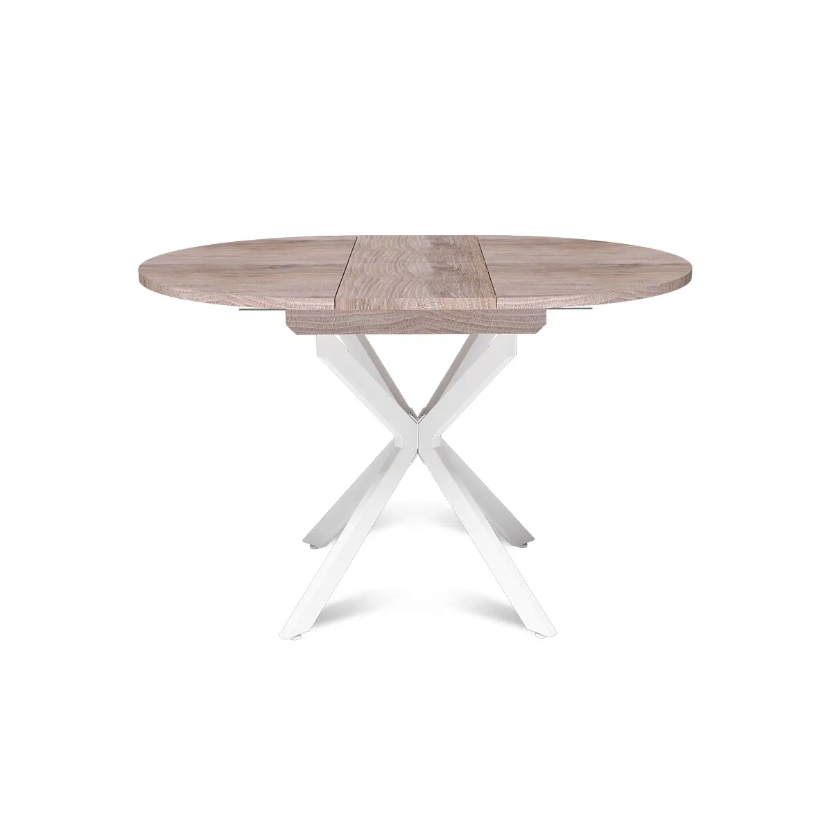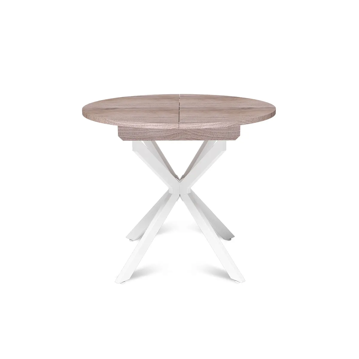 Стол круглый раздвижной Твист (90+30) дуб эндгрейн / опоры белые