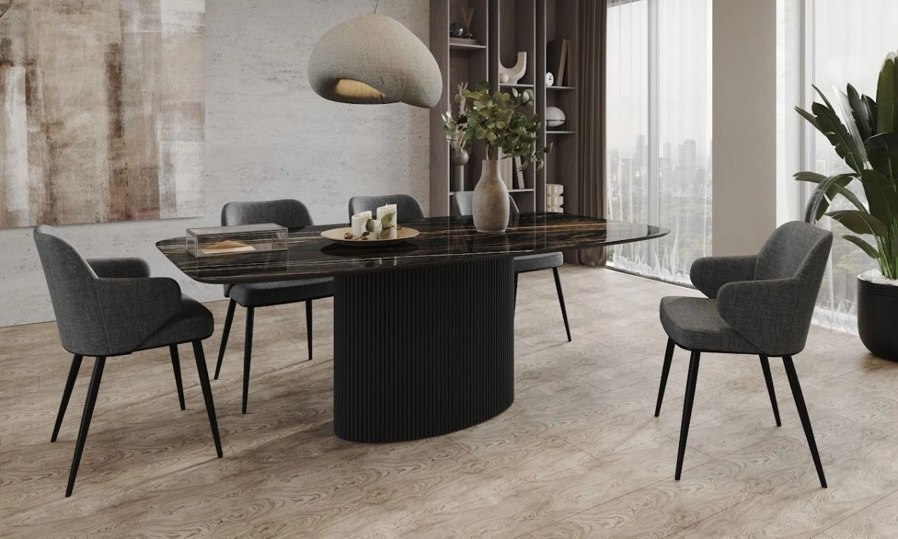 Стол Nolan 160, керамика глянцевая, черная / опора овал