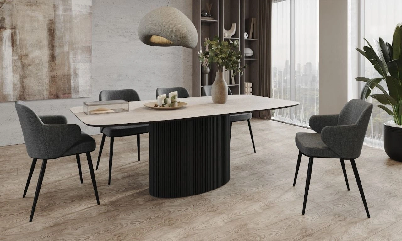 Стол Nolan — это воплощение стиля и изысканности. Он имеет овальную столешницу, изготовленную из керамики и шпона, а также металлическое основание. Чёрная металлическая опора придаёт столу сдержанный и элегантный вид, что делает его идеальным дополнением для различных интерьеров, особенно в современном и индустриальном стиле. Столешница из керамики привносит нотки натуральности и тепла, создавая уютную атмосферу в помещении. Стол Nolan гармонично сочетает в себе современные и природные элементы, что позволяет ему легко вписаться в любой интерьер.