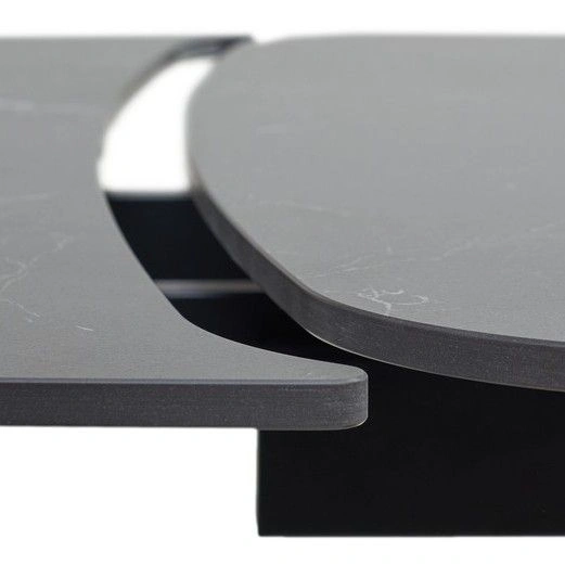 Двухсторонняя торцевая система раскладывания, две независимые вставки по 40 см позволяют увеличить длину столешницы на 200 или 240 см при необходимости. Рисунок вставок может не совпадать и не являться продолжением рисунка основной столешницы.