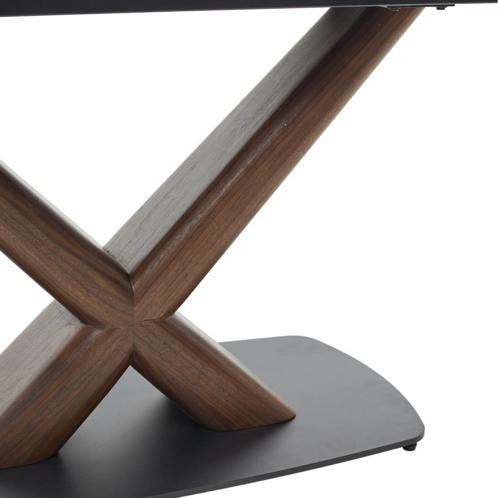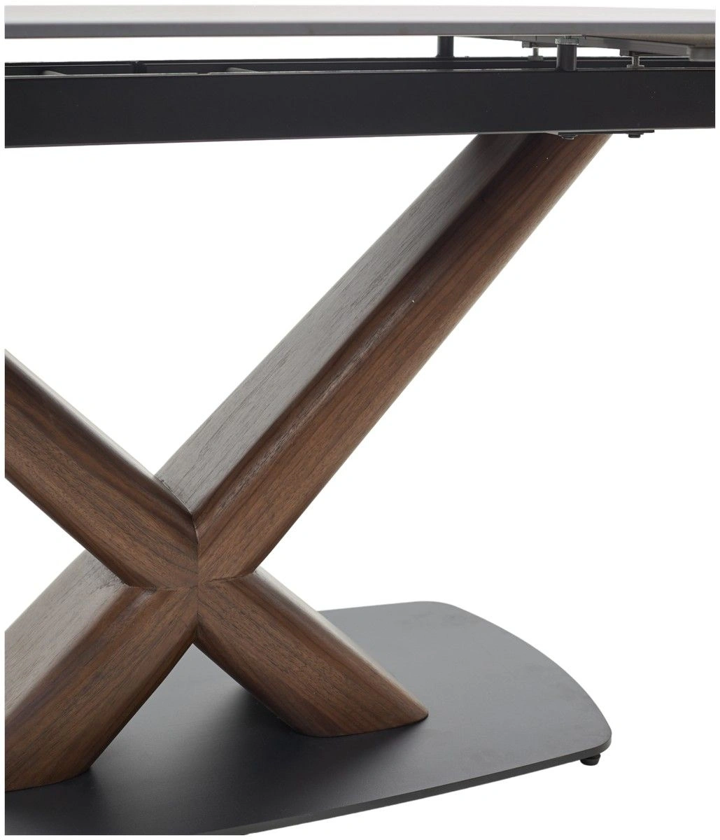 Рама под столешницей - металл, цвет - черный. Подстолье - массив березы + шпон ореха, цвет - орех. Пластина - металл, цвет - черный
