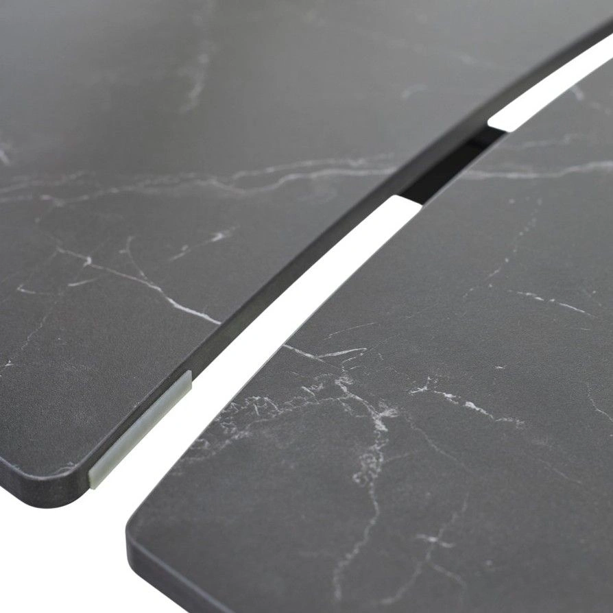 Двухсторонняя торцевая система раскладывания, две независимые вставки по 30 см позволяют увеличить длину столешницы на 150 или 180 см при необходимости. Рисунок вставок может не совпадать и не являться продолжением рисунка основной столешницы.
