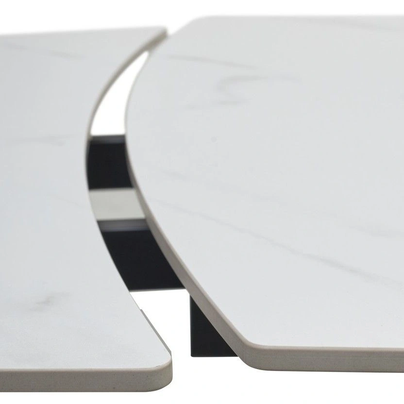 Двухсторонняя торцевая система раскладывания, две независимые вставки по 30 см позволяют увеличить длину столешницы на 170 или 200 см при необходимости. Рисунок вставок может не совпадать и не являться продолжением рисунка основной столешницы.