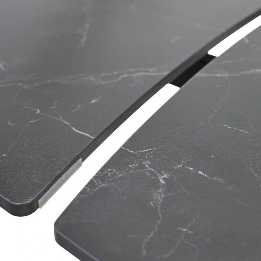 Двухсторонняя торцевая система раскладывания, две независимые вставки по 30 см позволяют увеличить длину столешницы на 170 или 200 см при необходимости. Рисунок вставок может не совпадать и не являться продолжением рисунка основной столешницы.