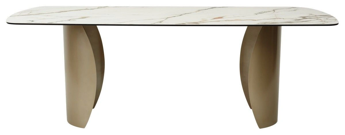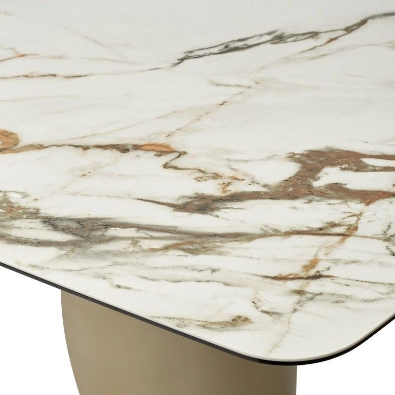 Основание стола - металл, цвет – шампань, продуманный дизайн конструкции способствует комфортному размещению за столом без неудобств ногам.