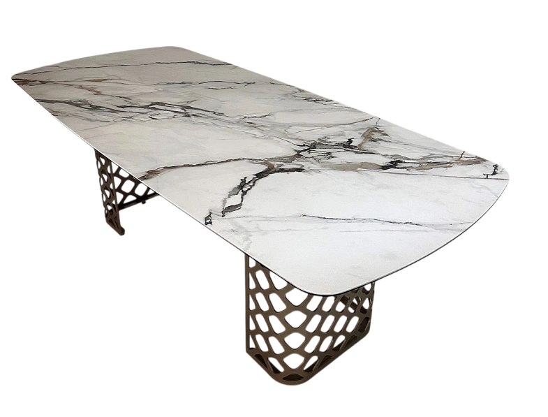 Нераскладной стол Caviar с итальянской керамикой, толщина столешницы 13 мм (3 мм керамика + 10 мм стекло), не царапается, не впитывает загрязнения, термостойкая.
