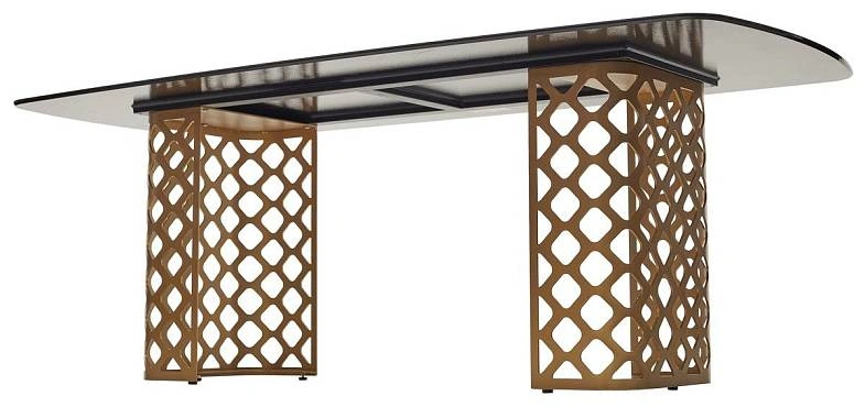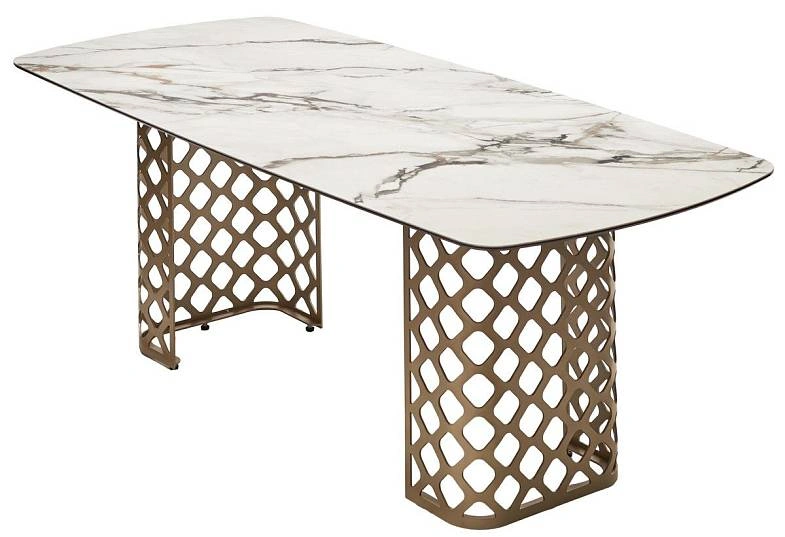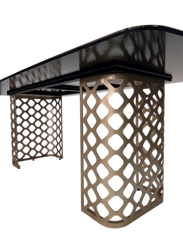 Основание стола - металл, цвет – бронза, продуманный дизайн конструкции способствует комфортному размещению за столом без неудобств ногам.