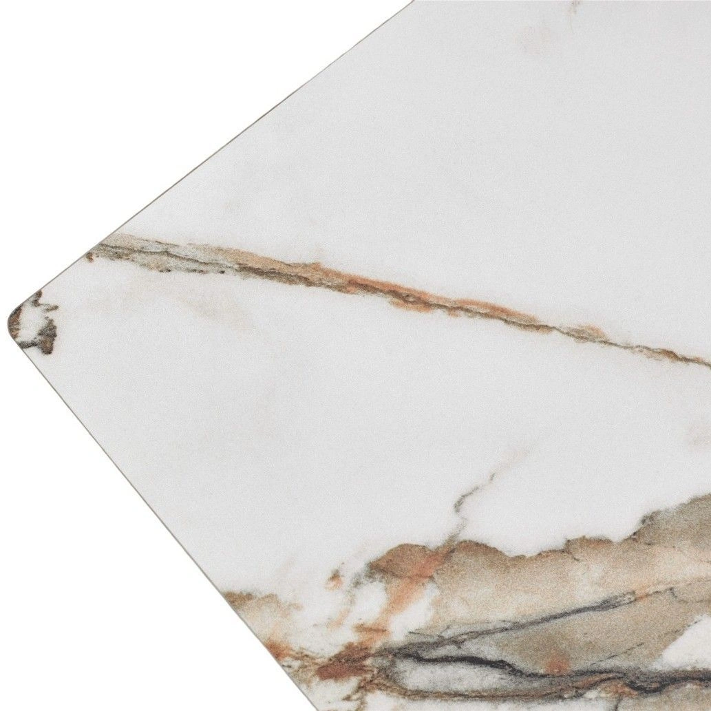 Итальянская матовая керамика в цвете контрастный мрамор, толщина столешницы 13 мм (3 мм керамика + 10 мм стекло), не царапается, не впитывает загрязнения, термостойкая;