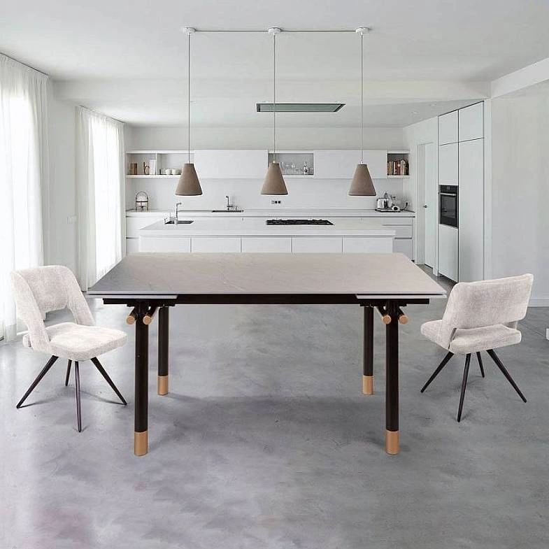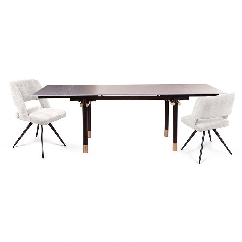 Стол обеденный Trump (160+40+40), керамика серая + 2 стула Barrie с подлокотниками + 2 без подлокотников