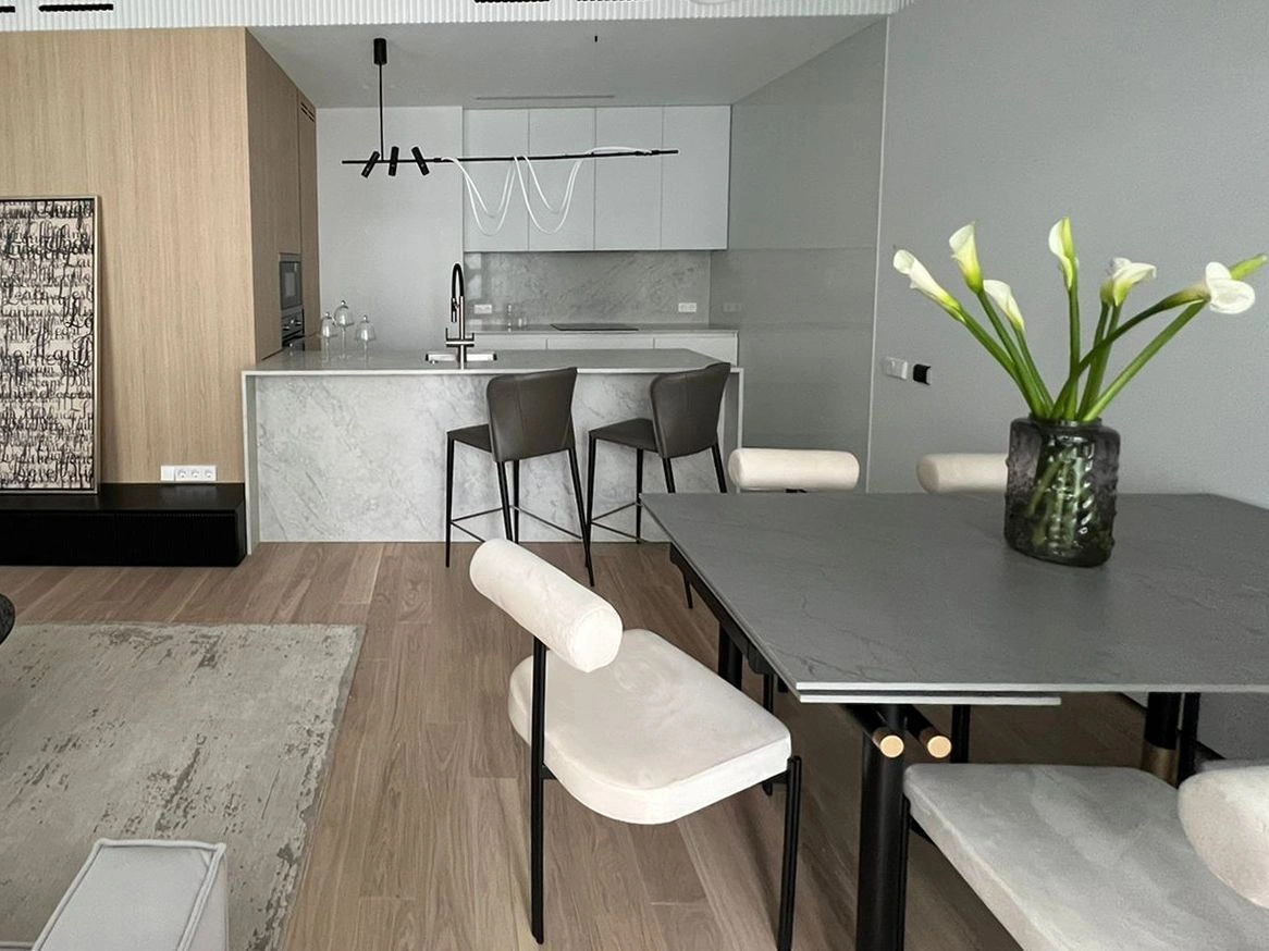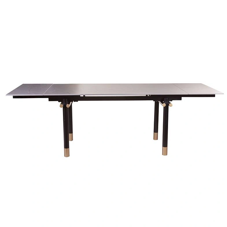 Стол обеденный Trump (160+40+40), керамика серая + 2 стула Barrie с подлокотниками + 2 без подлокотников
