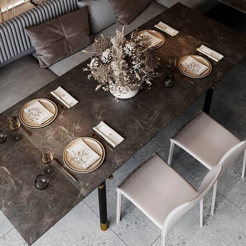 Стол обеденный Trump (160+40+40), керамика серая + 4 стула Molly