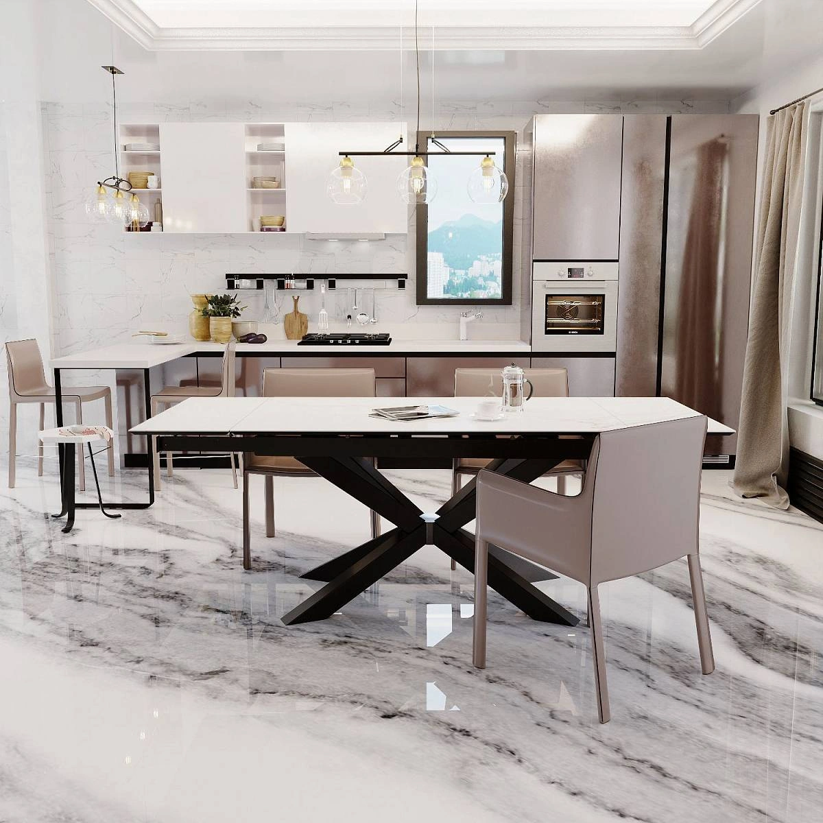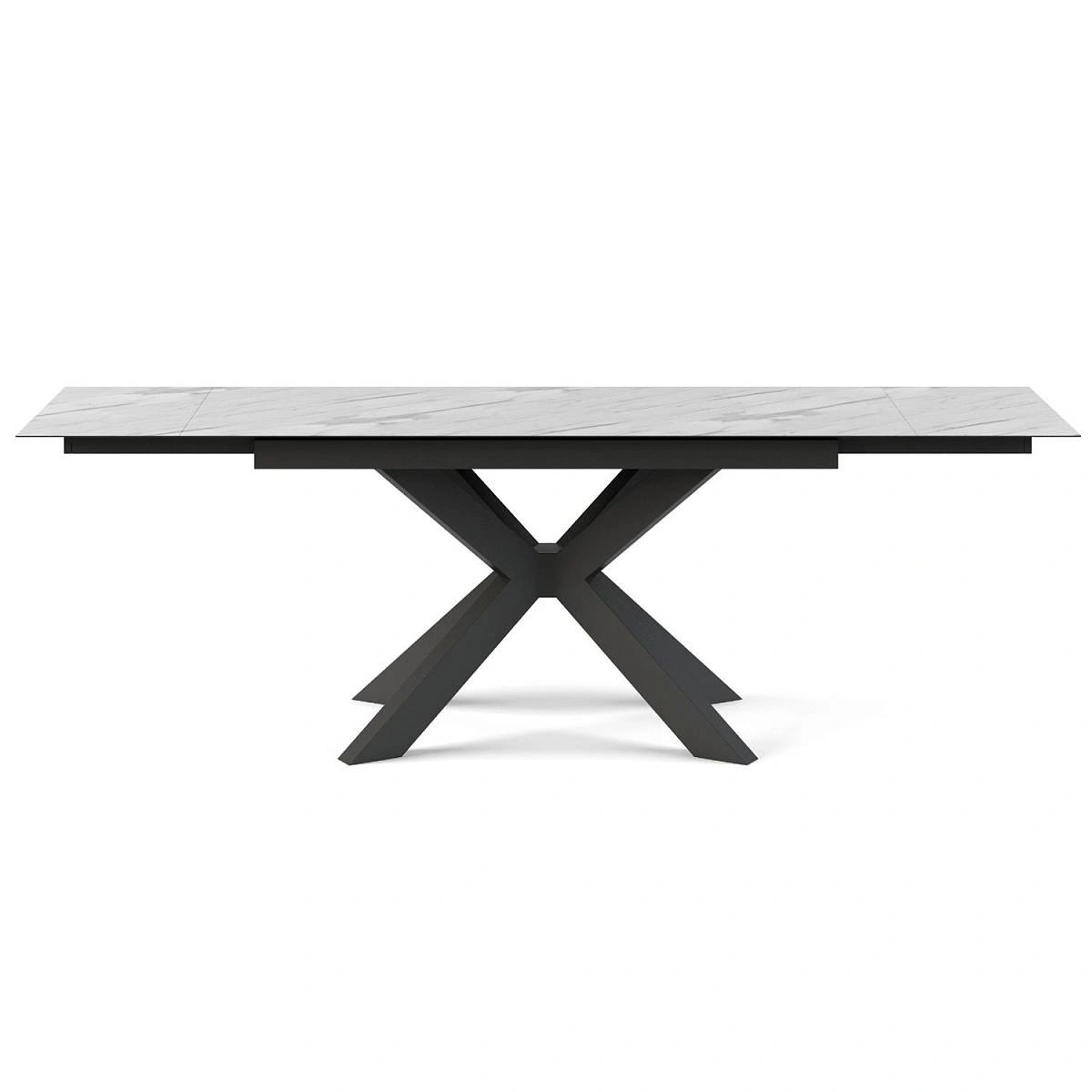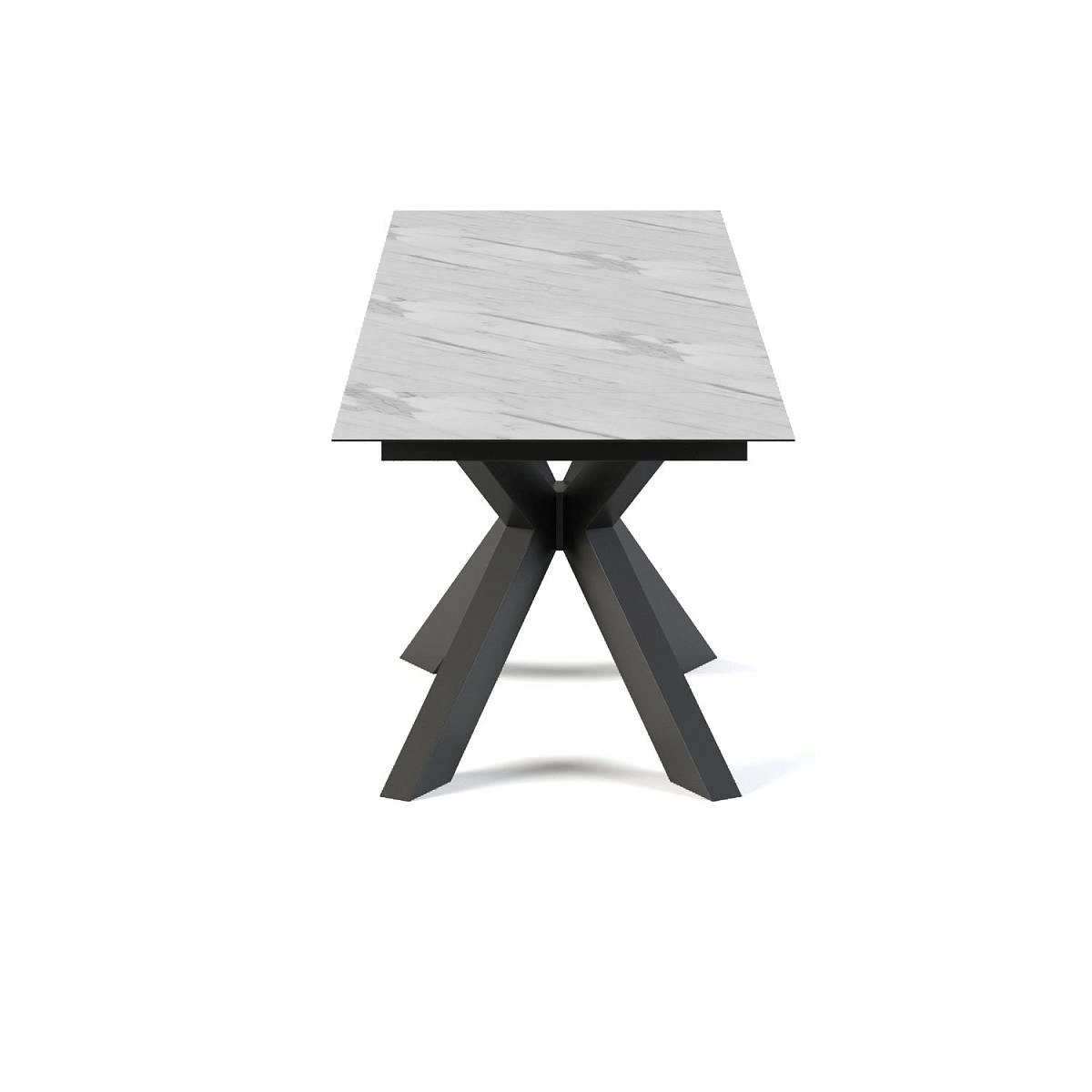 Раскладной стол Ariston выглядит смело и оригинально. Черные металлические ножки являются центральным элементом, притягивают внимание своей необычной изогнутой формой и четкой геометрией. При этом опоры обеспечивают непревзойденную устойчивость.