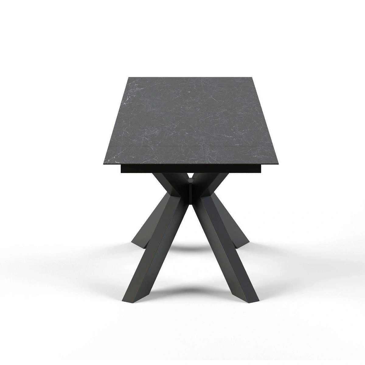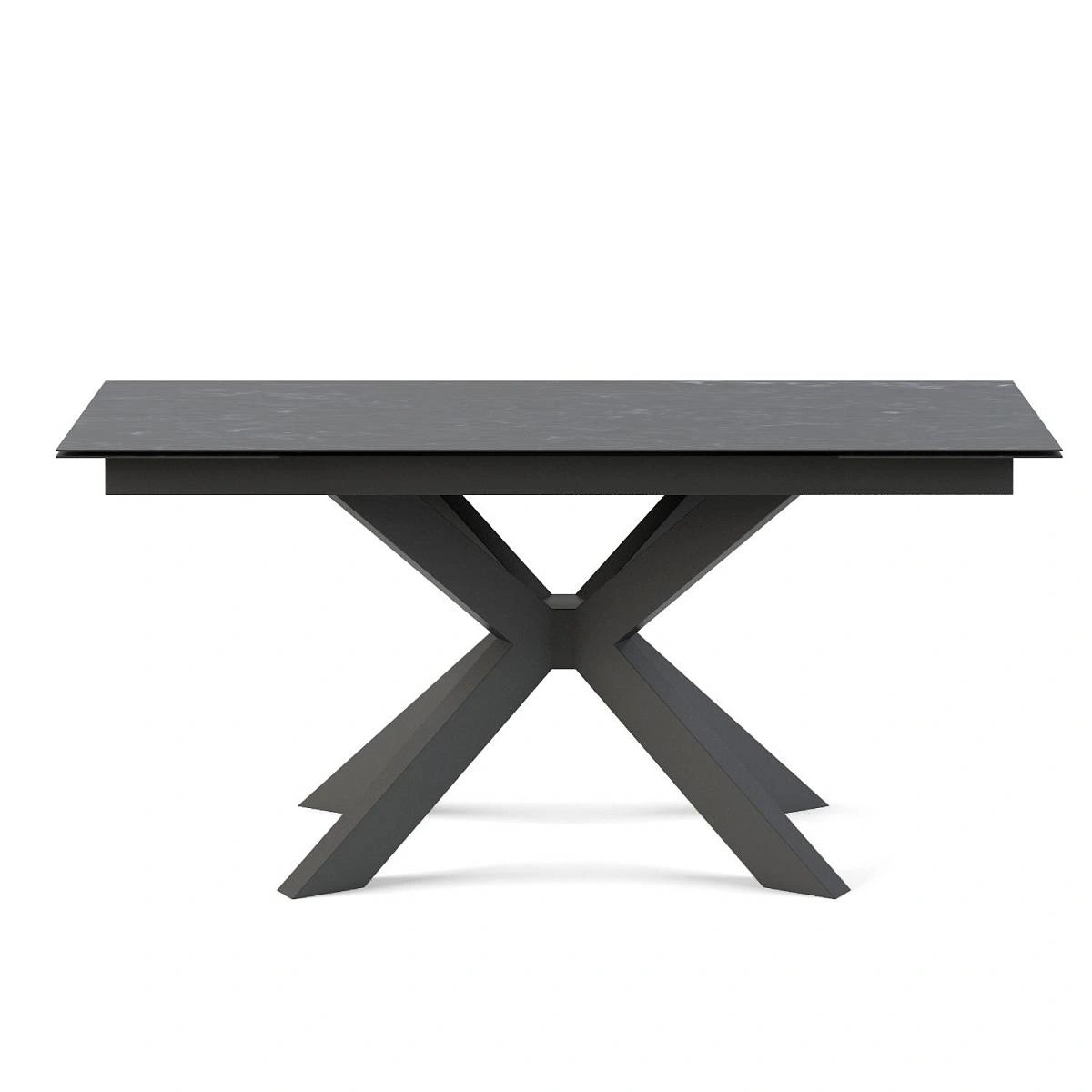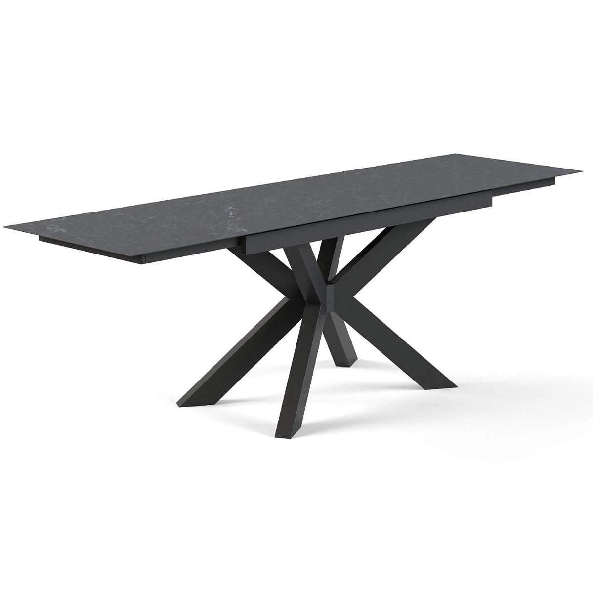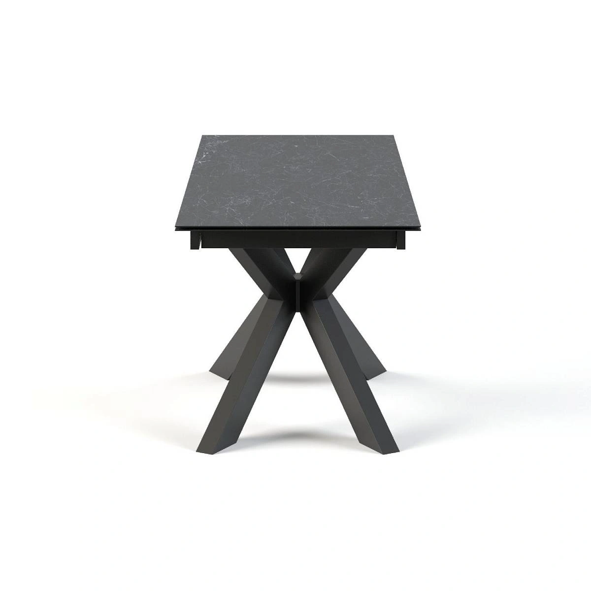 Раскладной стол Ariston выглядит смело и оригинально. Черные металлические ножки являются центральным элементом, притягивают внимание своей необычной изогнутой формой и четкой геометрией. При этом опоры обеспечивают непревзойденную устойчивость.