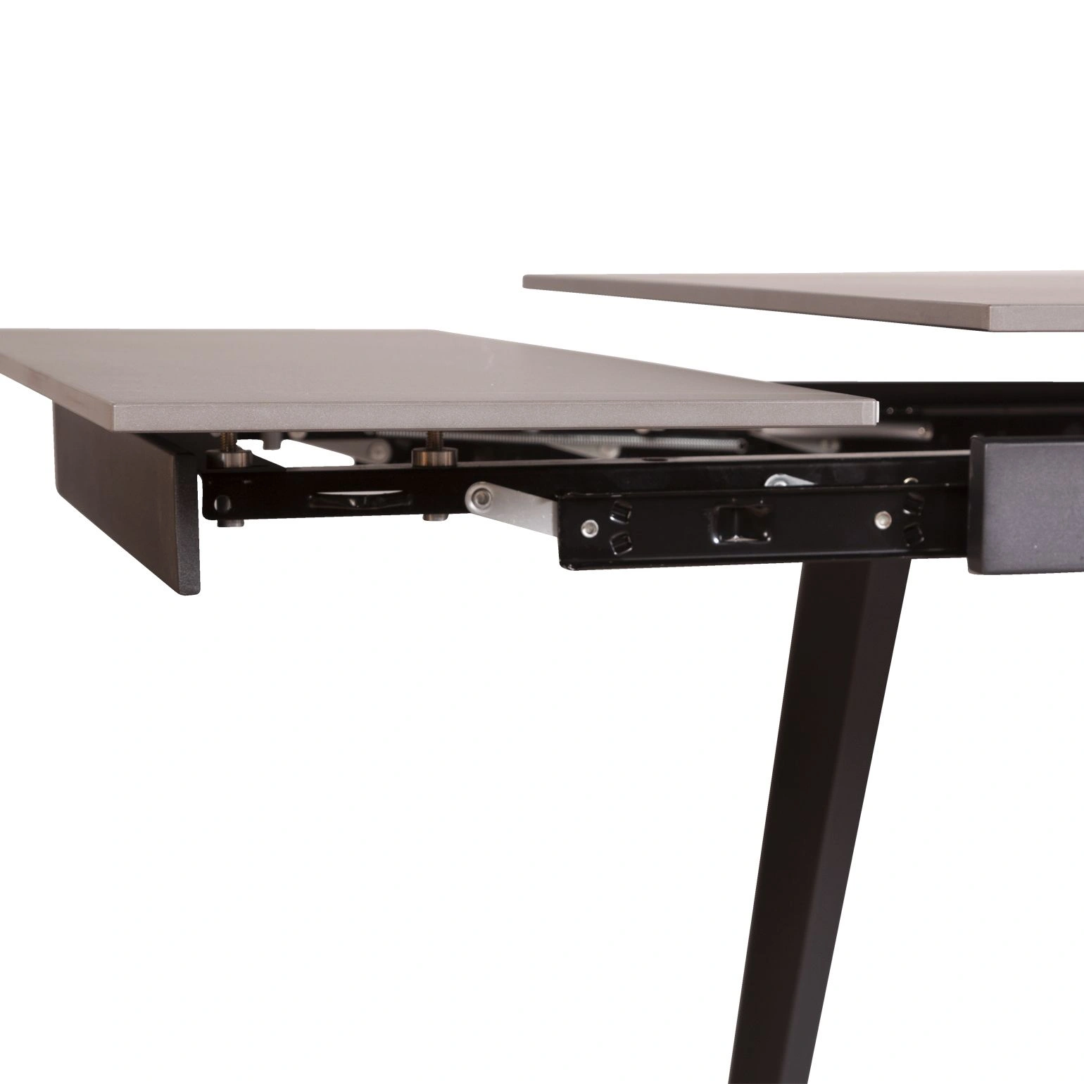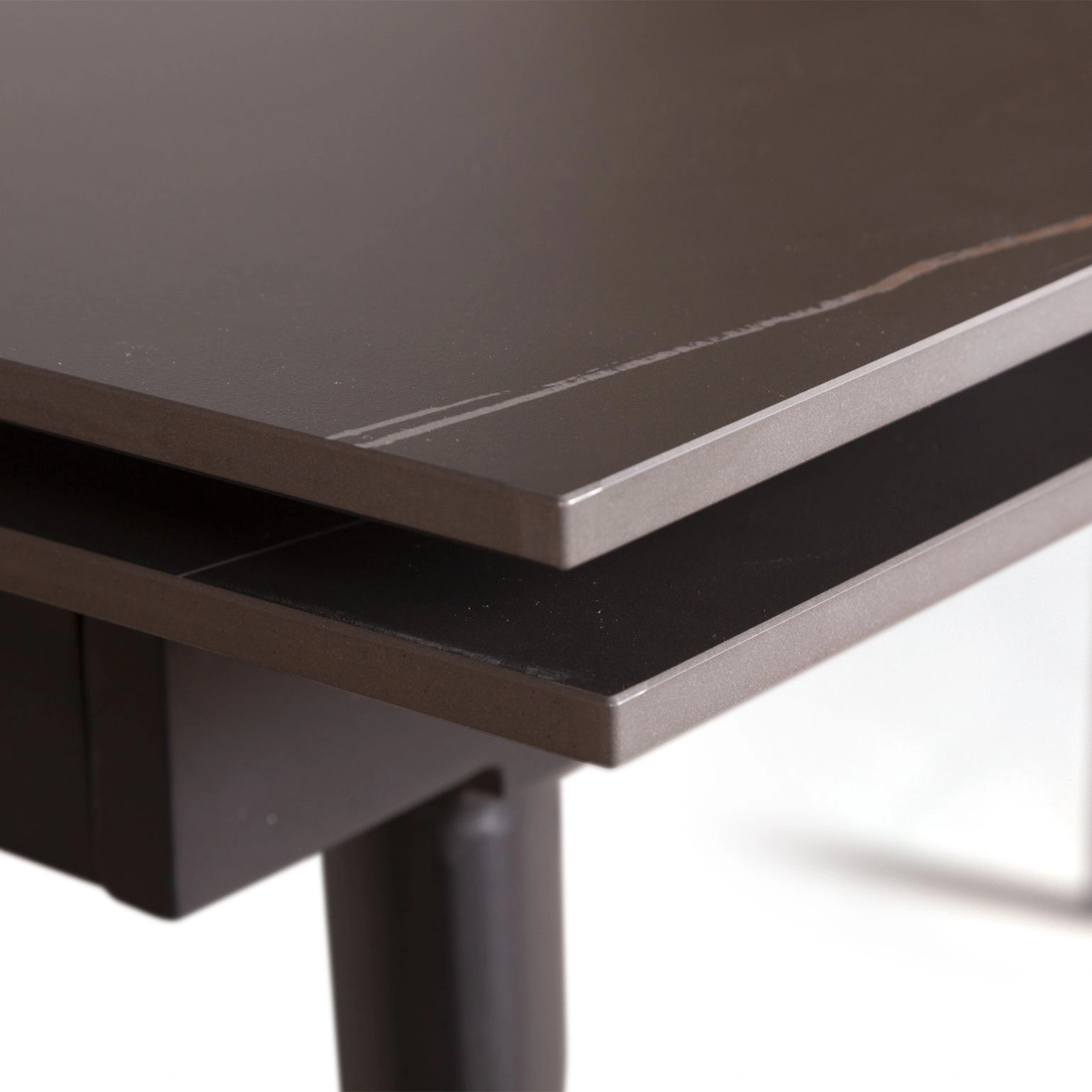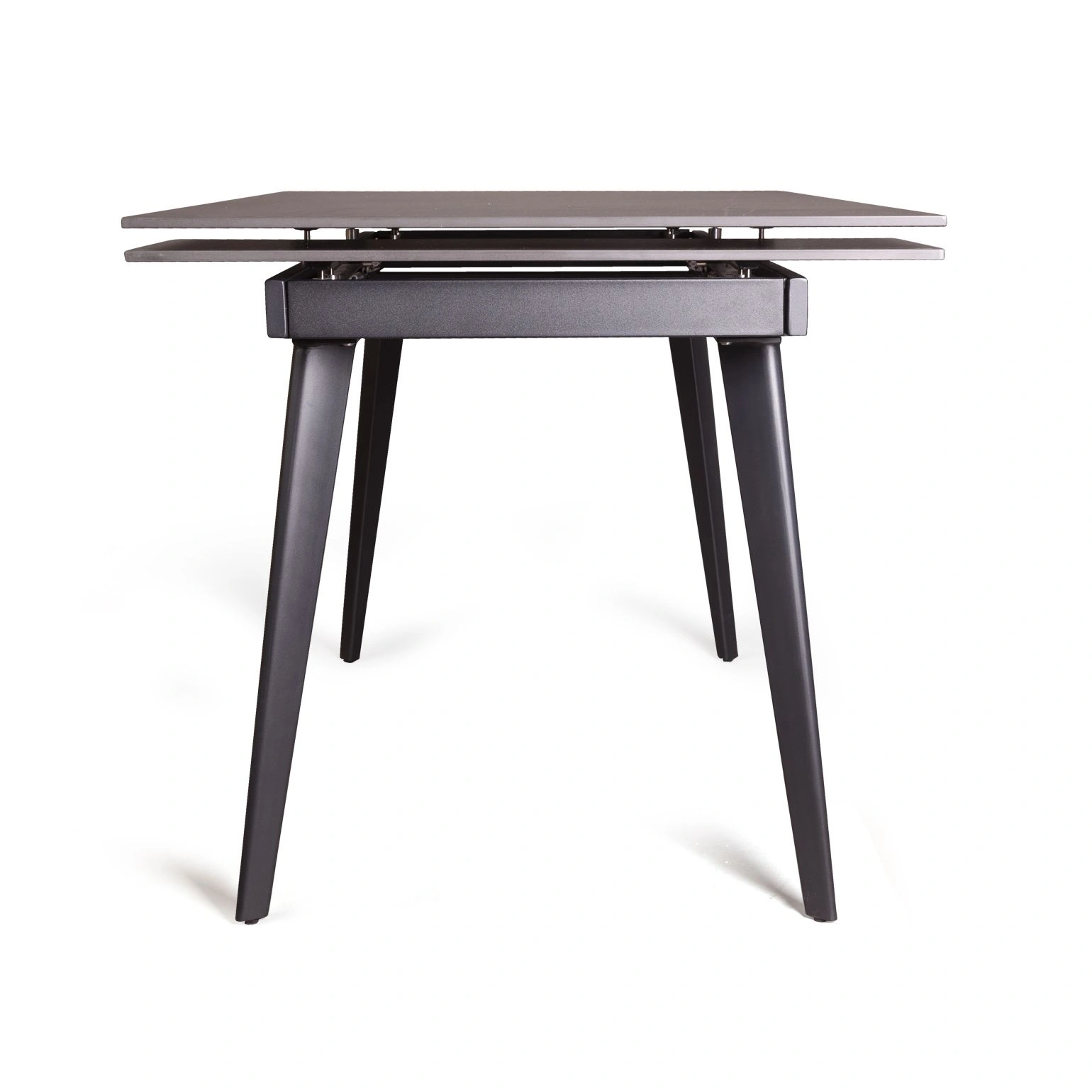 Металлические опоры, окрашенные в черный матовый цвет, идеально выполняют свою основную функцию по обеспечению устойчивости конструкции стола.