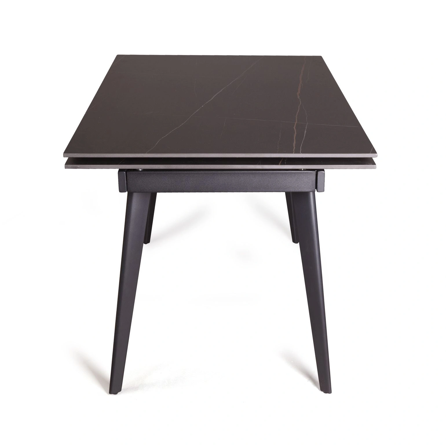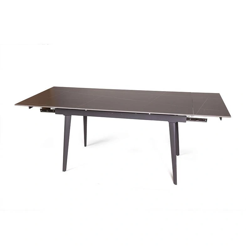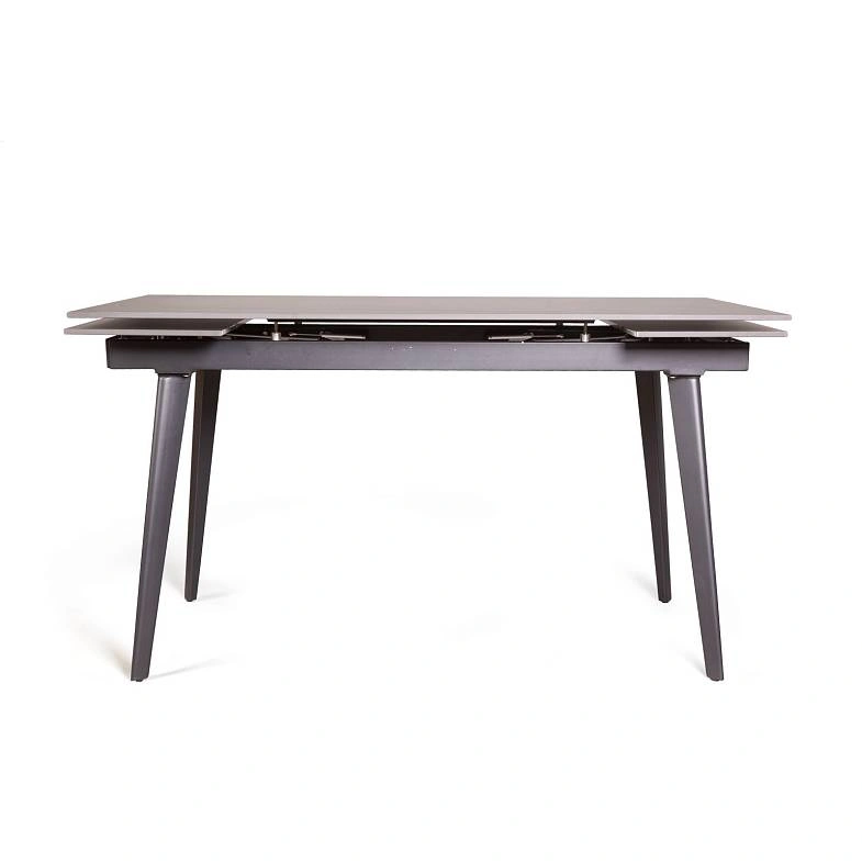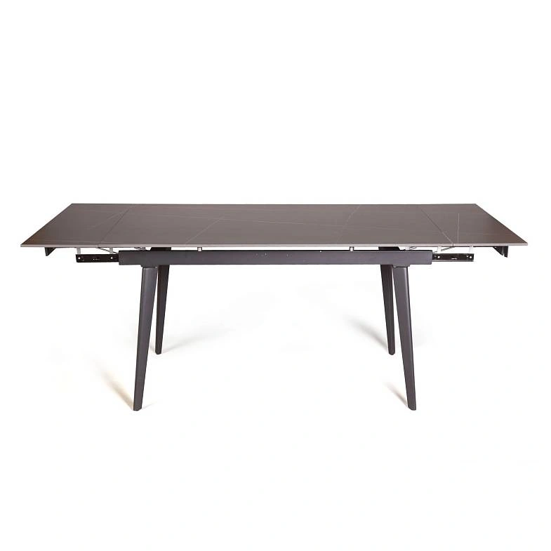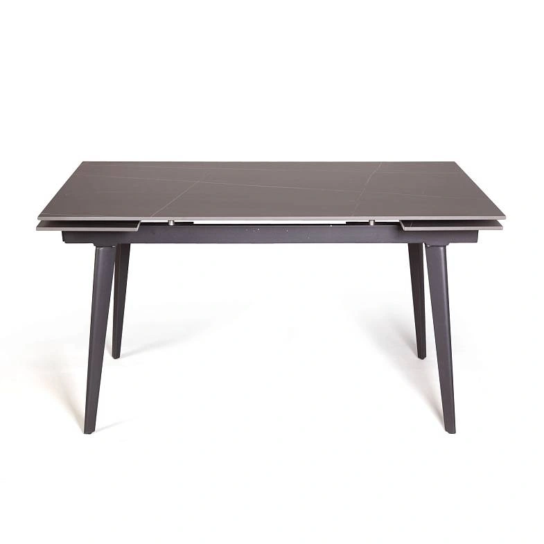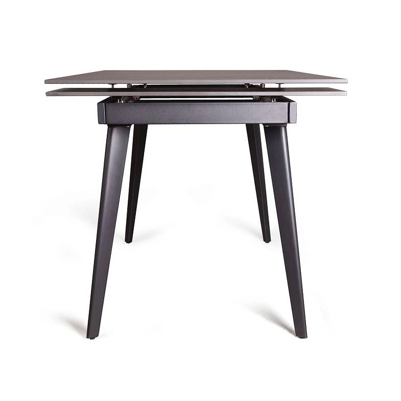 Керамическая столешница с рисунком мрамор идеально сочетается с остроконечными опорами, выполненными в черном цвете. Толщина столешницы 12 мм. (прослужит вам долгое время и не потеряет свой внешний вид). Стол смотрится легко, изящно, стильно и, конечно, станет украшением любого интерьера.