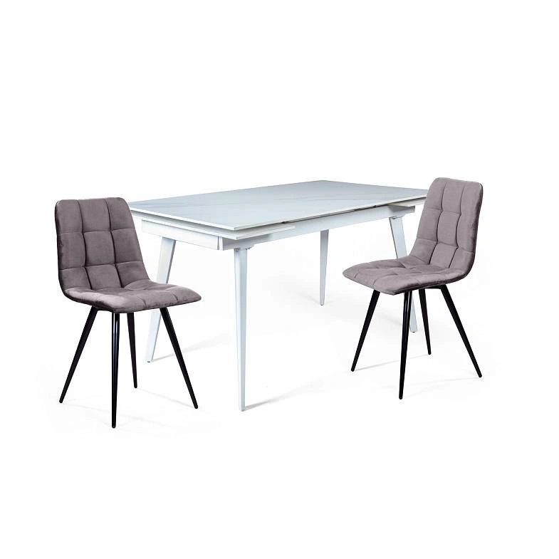 СтолешницаКерамическая столешница с рисунком серый мрамор идеально сочетается с остроконечными опорами, выполненными в белом цвете. Толщина столешницы 12 мм. (прослужит вам долгое время и не потеряет свой внешний вид). Стол смотрится легко, изящно, стильно и, конечно, станет украшением любого интерьера.