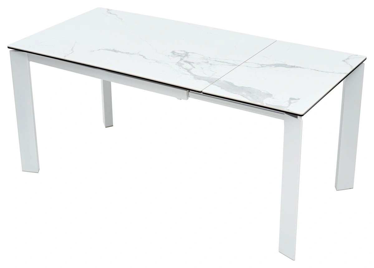 Вставка прямоугольного стола Dogma выдвигается на 50 см с торца вместе с ножками со встроенными колесами, не царапающими пол, что позволяет быстро и легко увеличить длину столешницы до 170 см. Рисунок вставки может не совпадать и не являться продолжением рисунка основной столешницы.