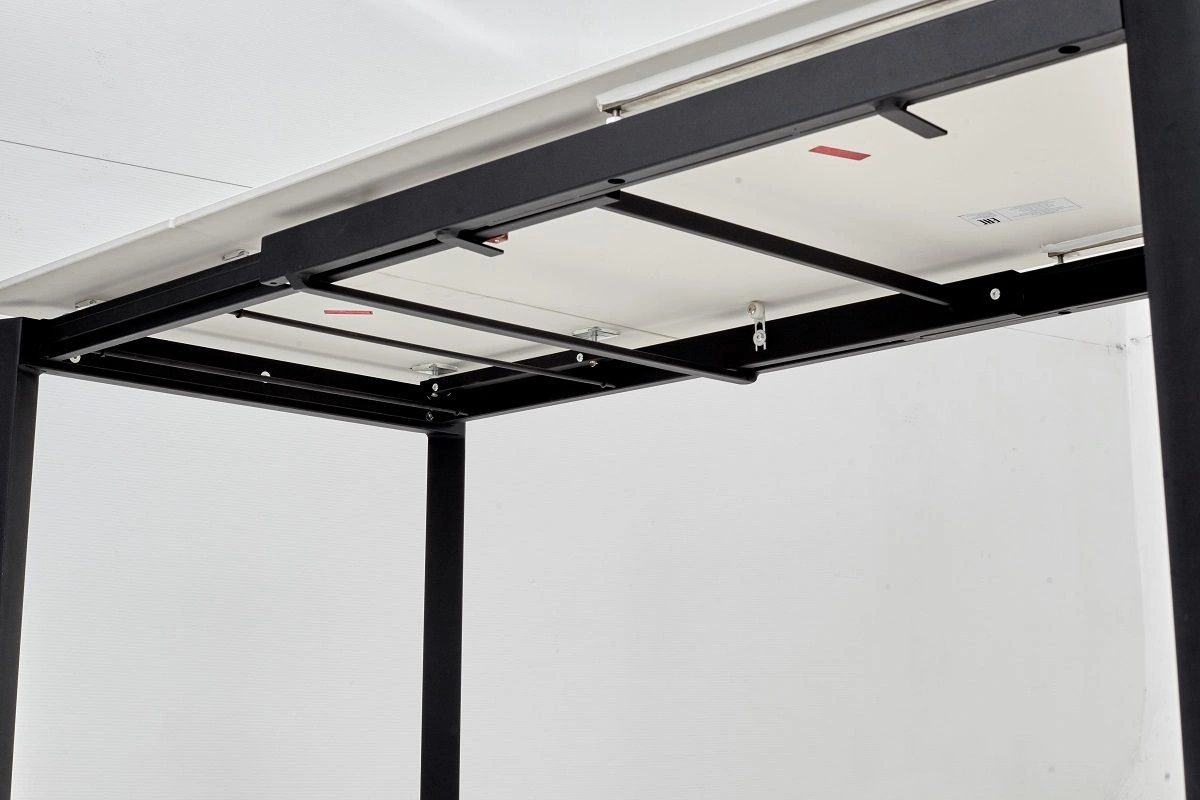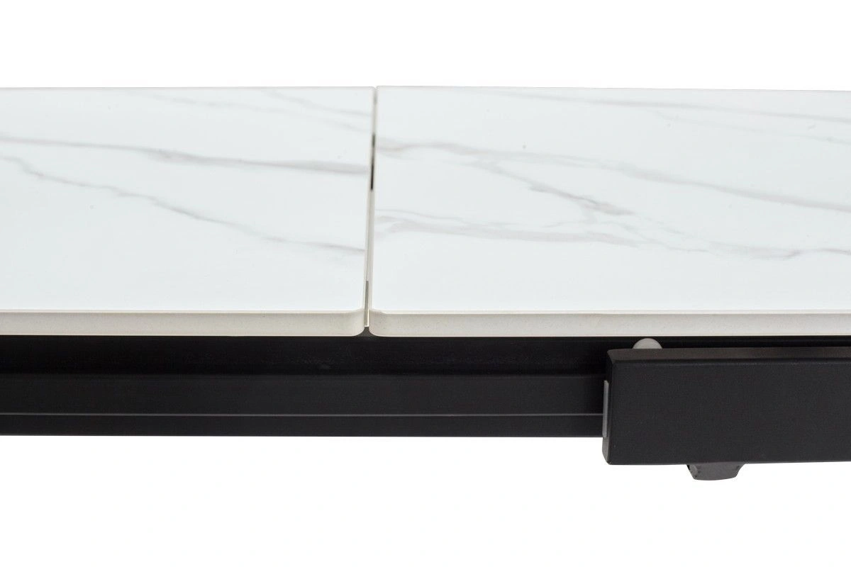 Вставка прямоугольного стола Dogma выдвигается на 50 см с торца вместе с ножками со встроенными колесами, не царапающими пол, что позволяет быстро и легко увеличить длину столешницы до 170 см. Рисунок вставки может не совпадать и не являться продолжением рисунка основной столешницы.