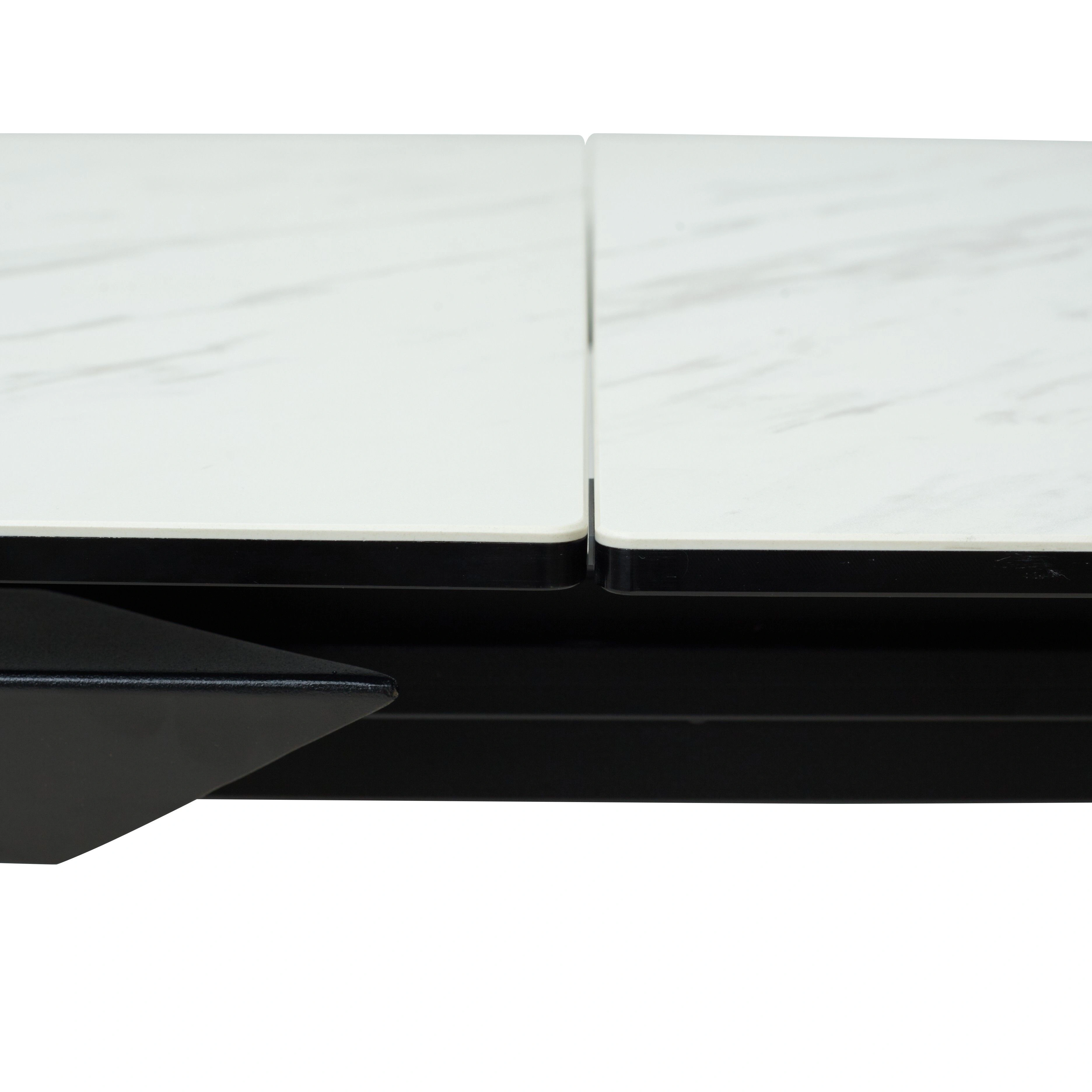 Вставка прямоугольного стола Dogma выдвигается из-под столешницы на 60 см, что позволяет быстро и легко увеличить длину до 220 см. Рисунок вставки может не совпадать и не являться продолжением рисунка основной столешницы.