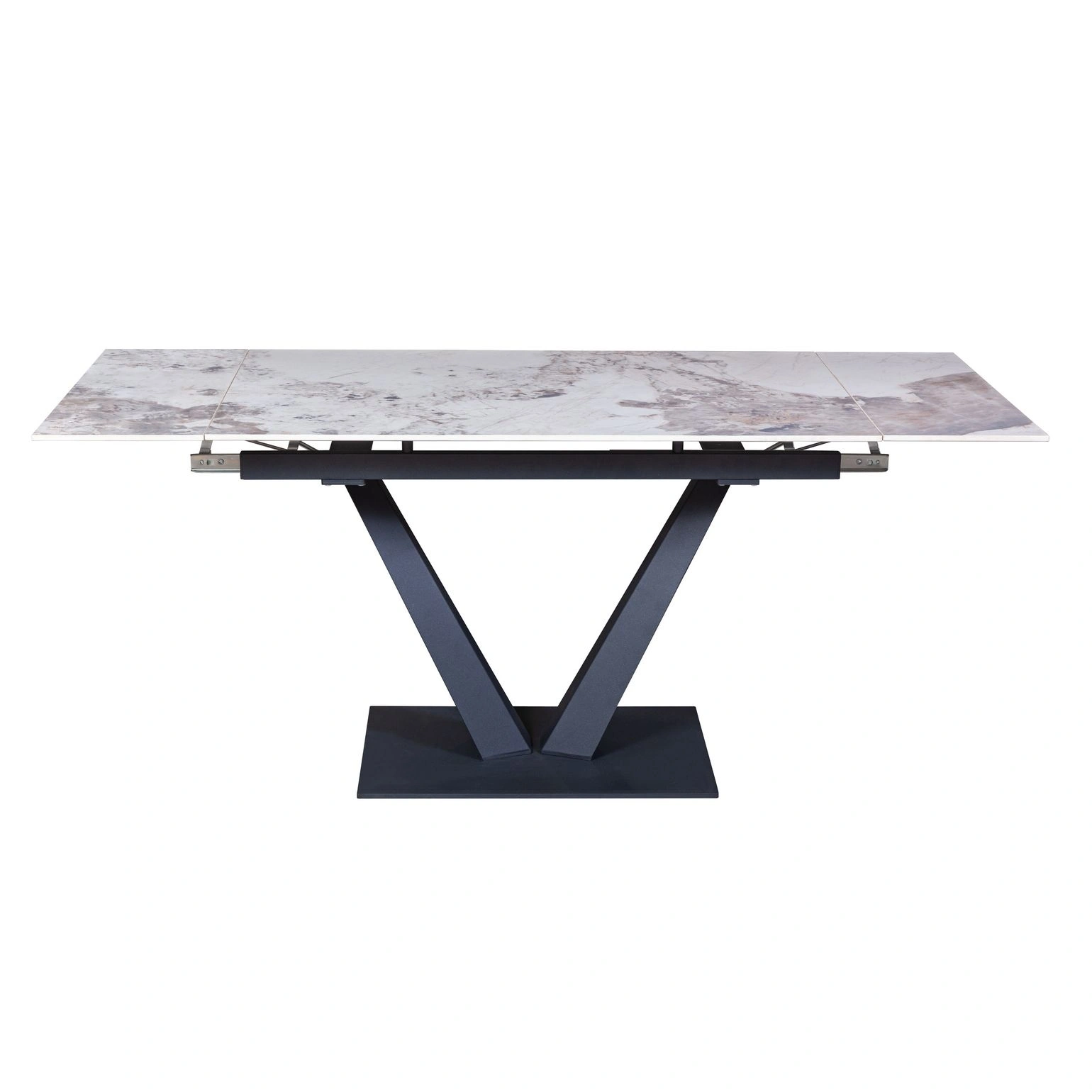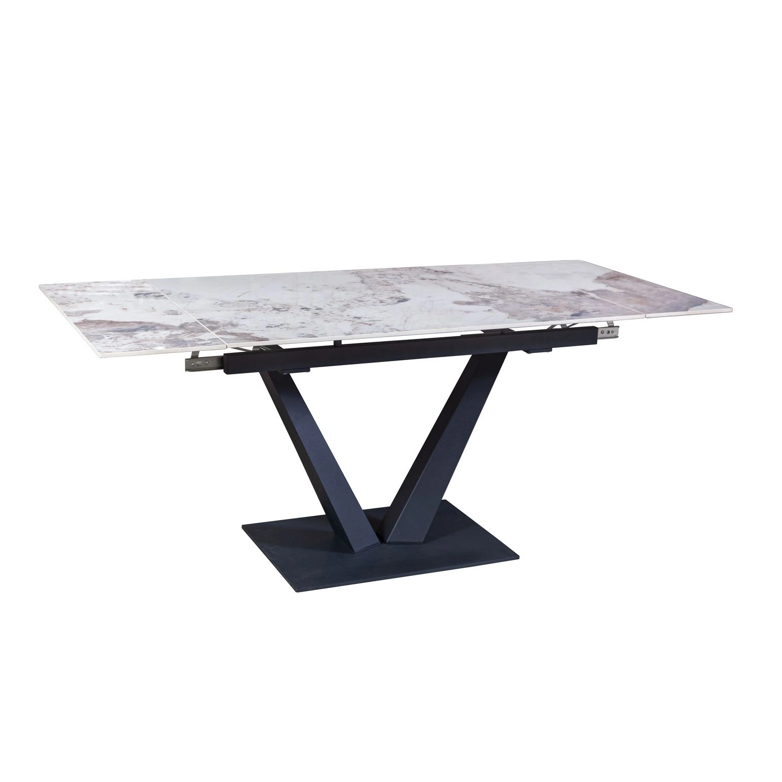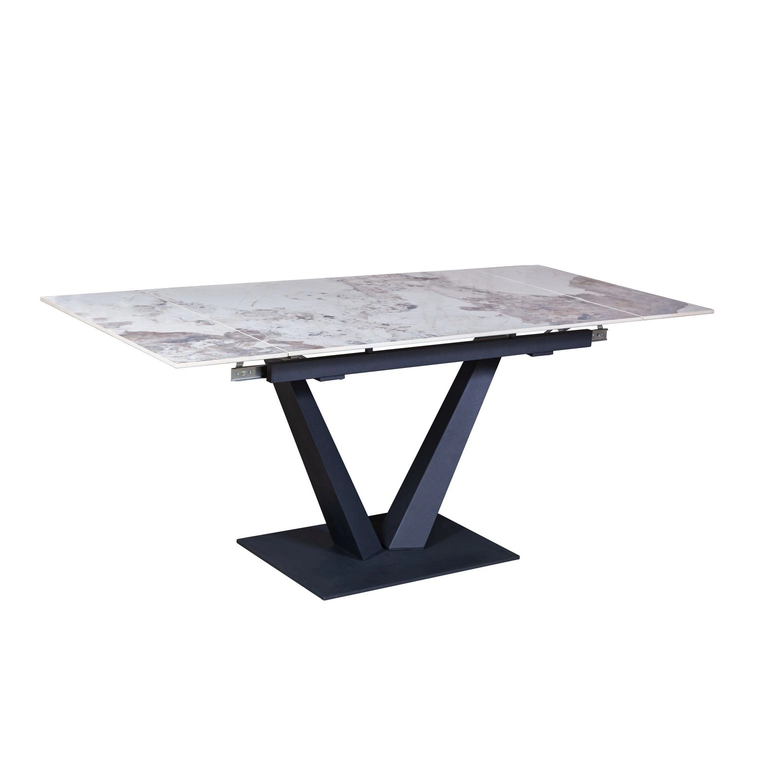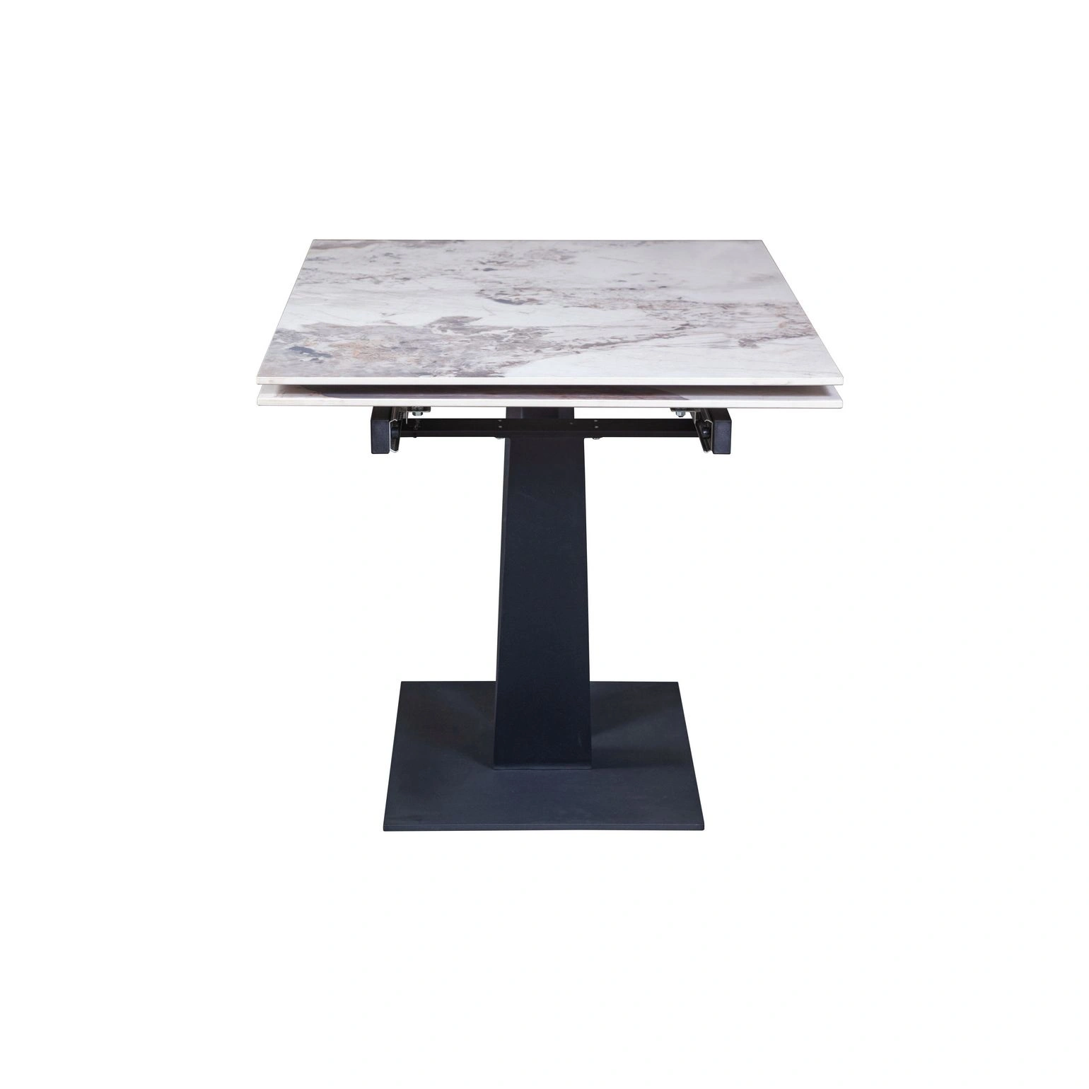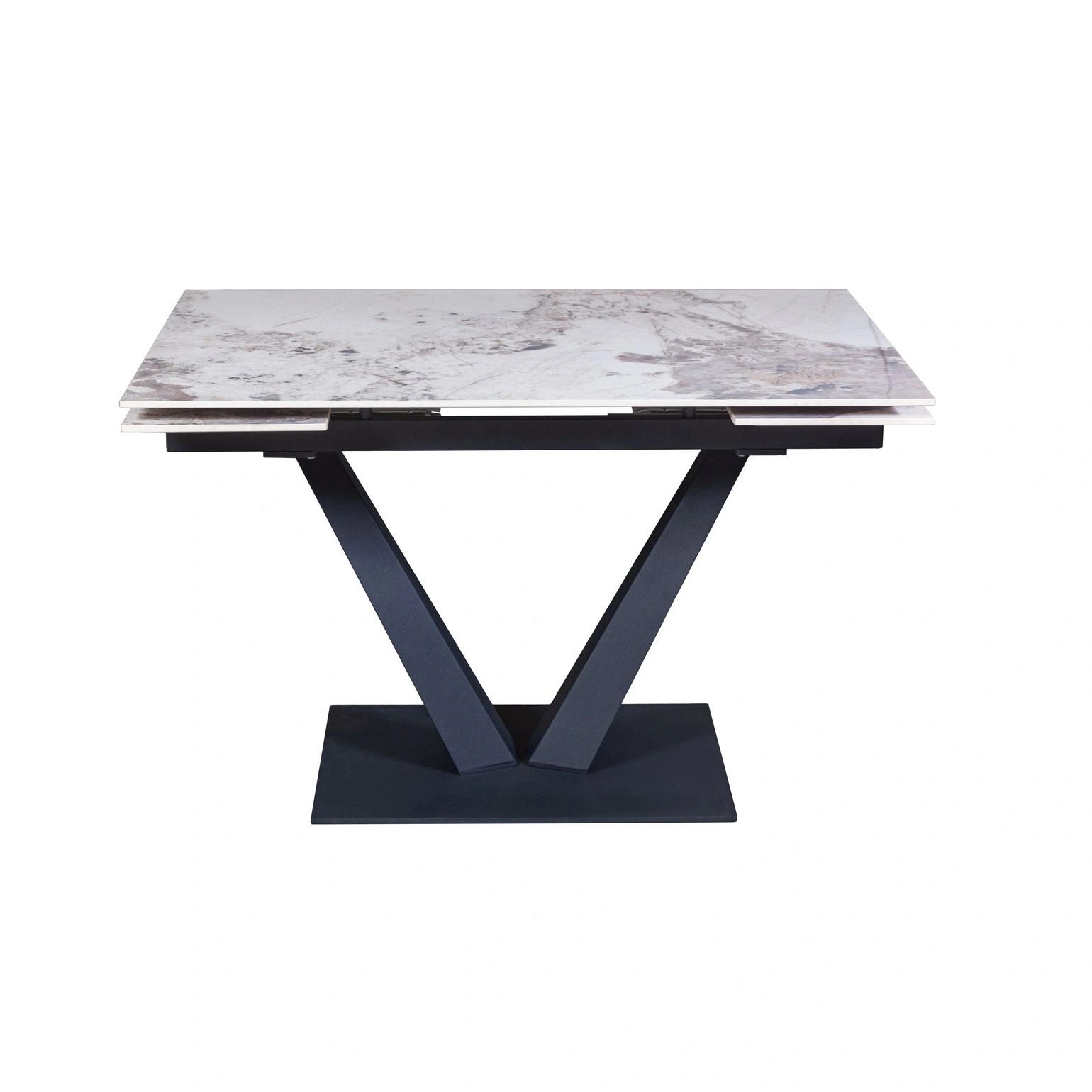 Стол с керамической столешницей «Malibu» представляет собой изысканное и функциональное обеденное место для вашего дома. Поверхность столешницы, выполненная из керамики, обеспечивает прочность, легкость в уходе и устойчивость к царапинам и температурным изменениям. Стильное металлическое основание дарит стабильность и надежность, дополняя современный дизайн стола. Данный стол идеально подходит для семейных обедов и встреч с друзьями, создавая уютную и стильную обстановку в вашем доме. Столешница модели «Malibu» может быть как компактной по площади так и просторной благодаря наличию механизма трансформации.