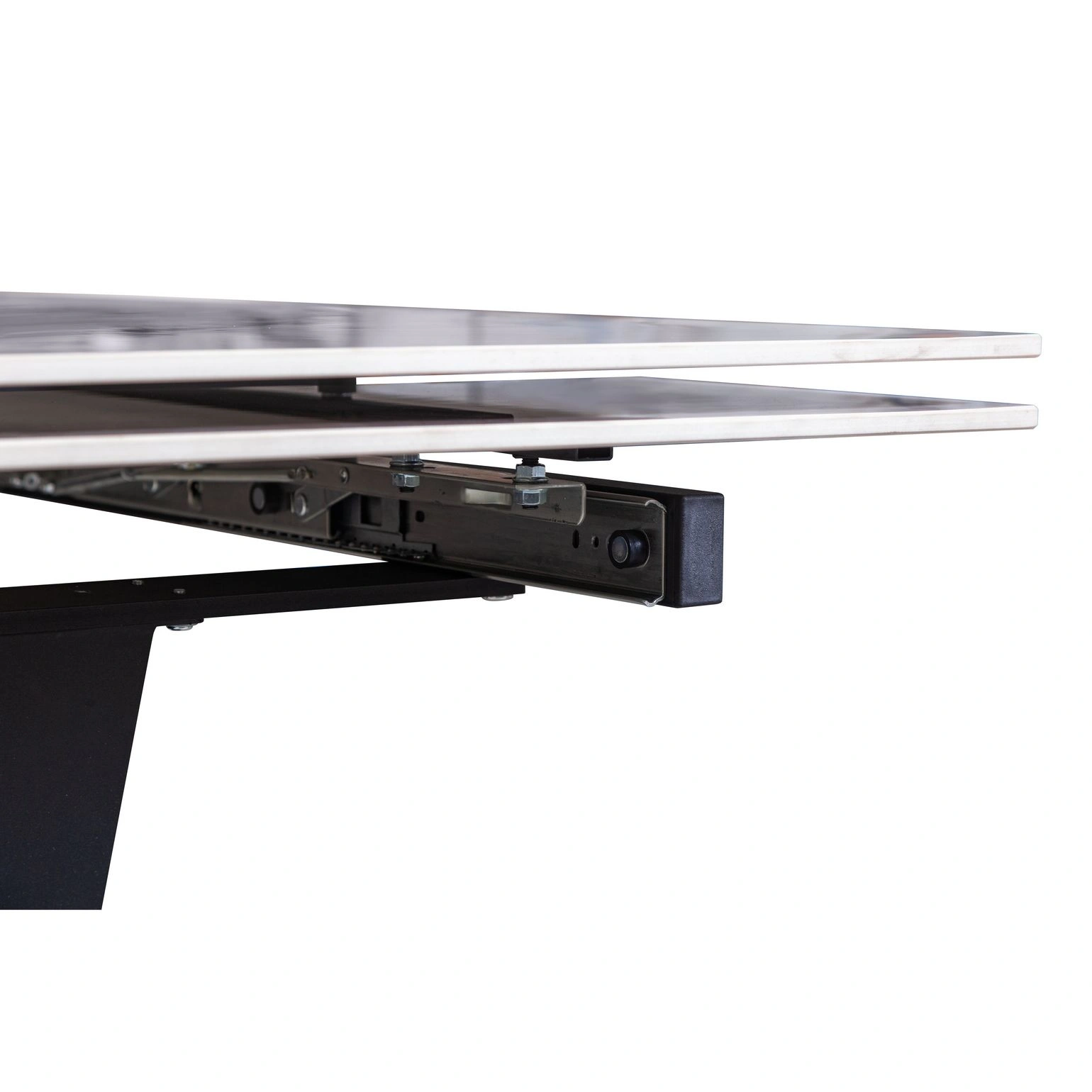 Стол Малибу оснащен механизмом трансформации выдвижения торцевых вставок на газлифтах, перемещающихся по направляющим. Данный механизм позволяет увеличить размер столешницы на 60 см (по 30 см на каждую сторону). Распределенная нагрузка на механизм - до 100 кг. Распределенная нагрузка на выдвижную часть - до 15 кг.