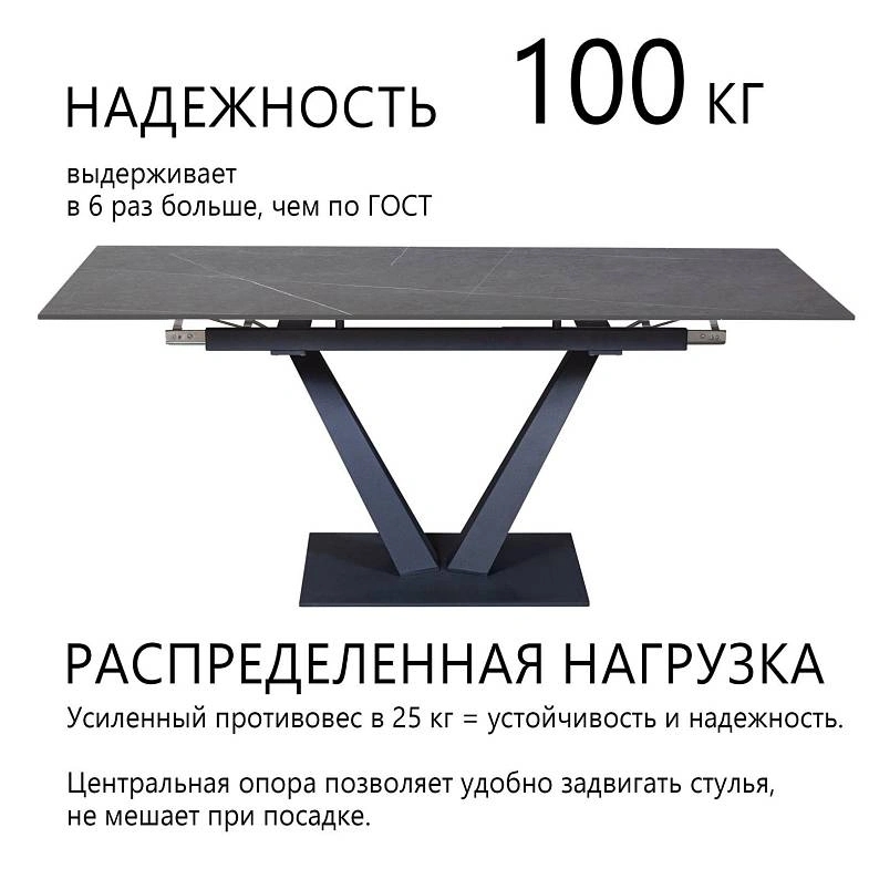 Стол раскладной Malibu (120+30+30), керамика матовая Snow Mountain Stone