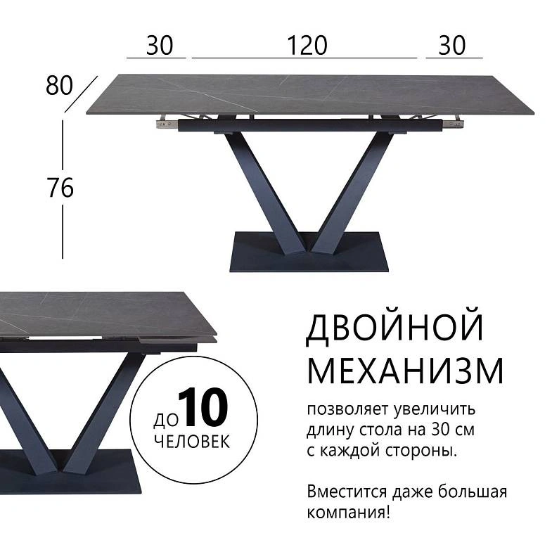 Стол раскладной Malibu (120+30+30), керамика матовая Armani Grey