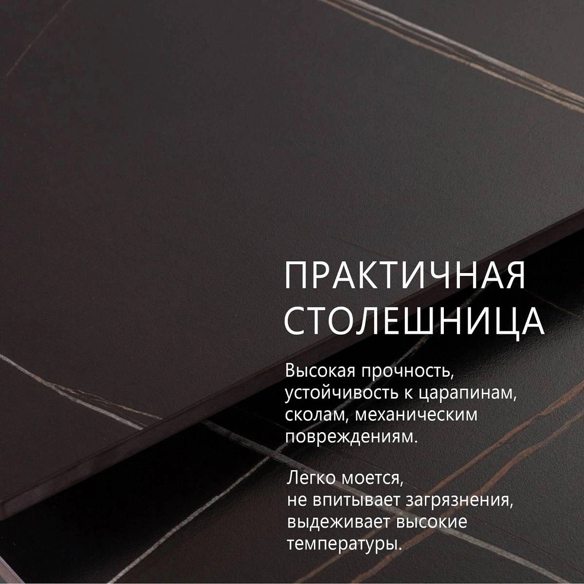 Столешница, выполненная из матовой керамической плиты толщиной 11 мм имеет ряд преимуществ: