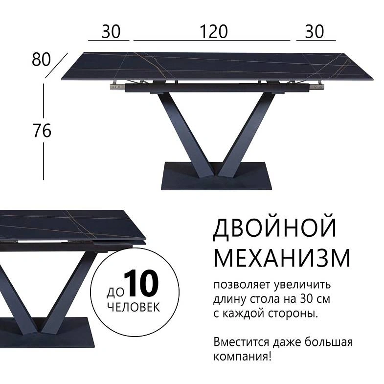 Стол с керамической столешницей «Malibu» представляет собой изысканное и функциональное обеденное место для вашего дома. Поверхность столешницы, выполненная из керамики, обеспечивает прочность, легкость в уходе и устойчивость к царапинам и температурным изменениям. Стильное металлическое основание дарит стабильность и надежность, дополняя современный дизайн стола. Данный стол идеально подходит для семейных обедов и встреч с друзьями, создавая уютную и стильную обстановку в вашем доме. Столешница модели «Malibu» может быть как компактной по площади так и просторной благодаря наличию механизма трансформации.