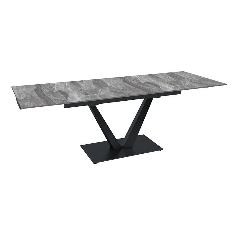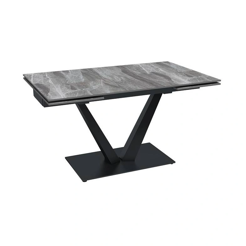 Стол с керамической столешницей «Malibu» представляет собой изысканное и функциональное обеденное место для вашего дома. Поверхность столешницы, выполненная из керамики, обеспечивает прочность, легкость в уходе и устойчивость к царапинам и температурным изменениям. Стильное металлическое основание дарит стабильность и надежность, дополняя современный дизайн стола. Данный стол идеально подходит для семейных обедов и встреч с друзьями, создавая уютную и стильную обстановку в вашем доме. Столешница модели «Malibu» может быть как компактной по площади так и просторной благодаря наличию механизма трансформации.