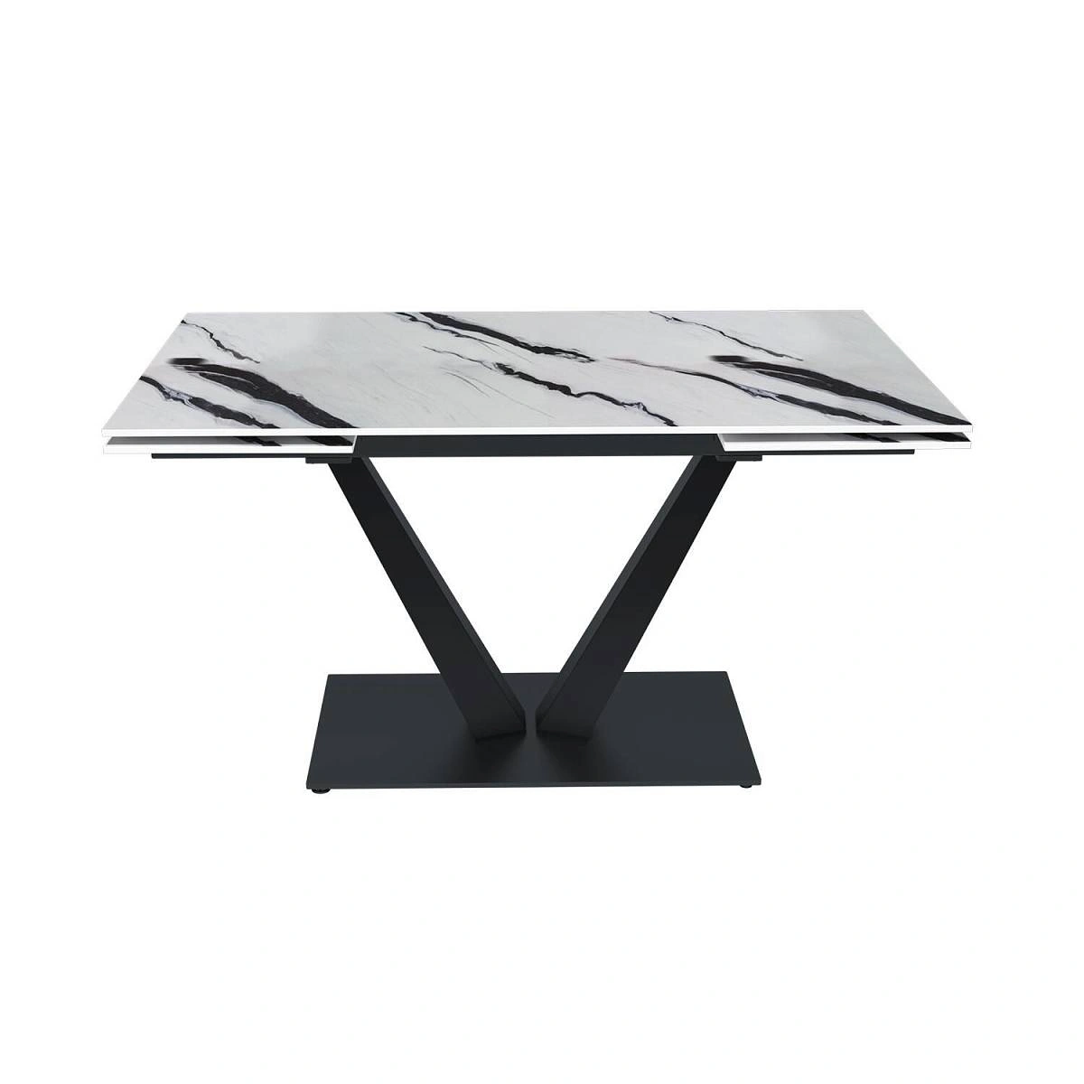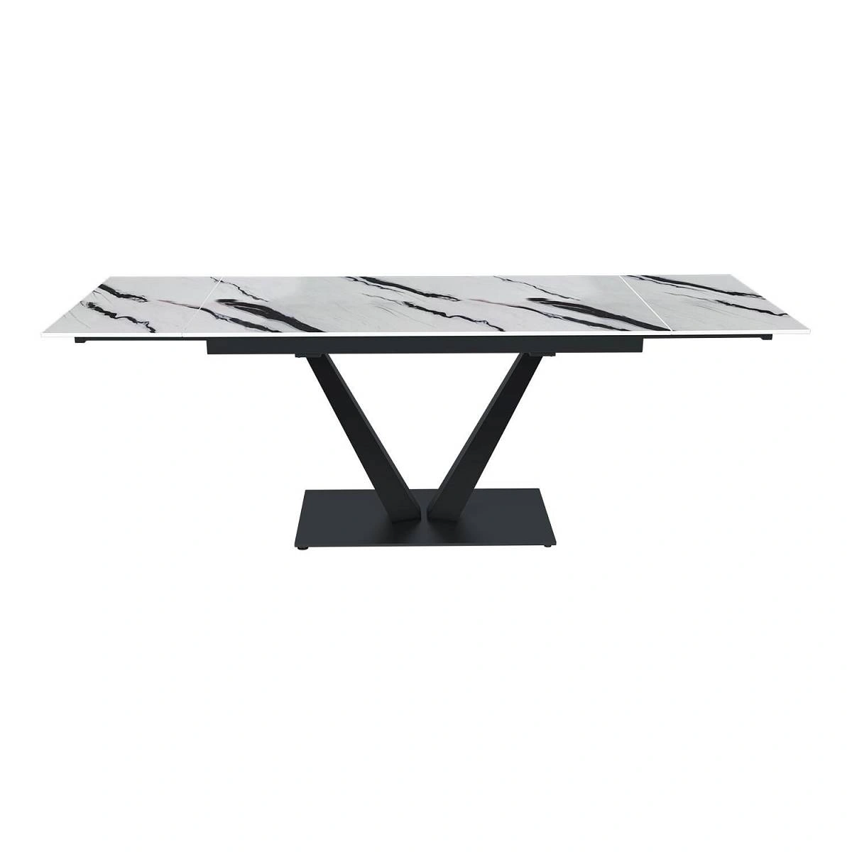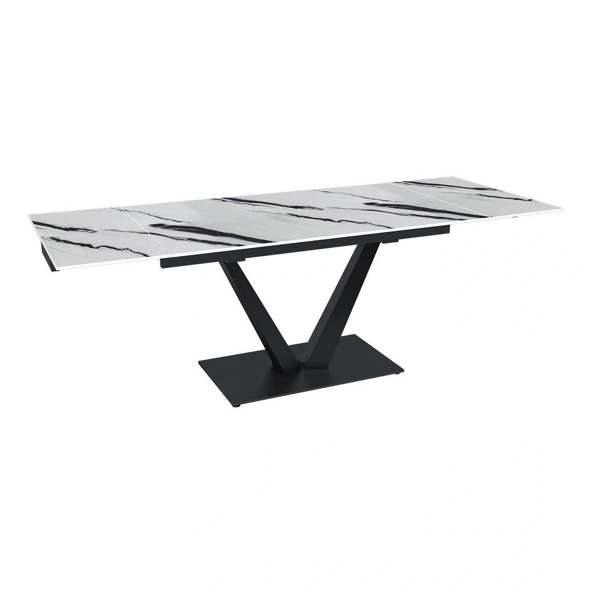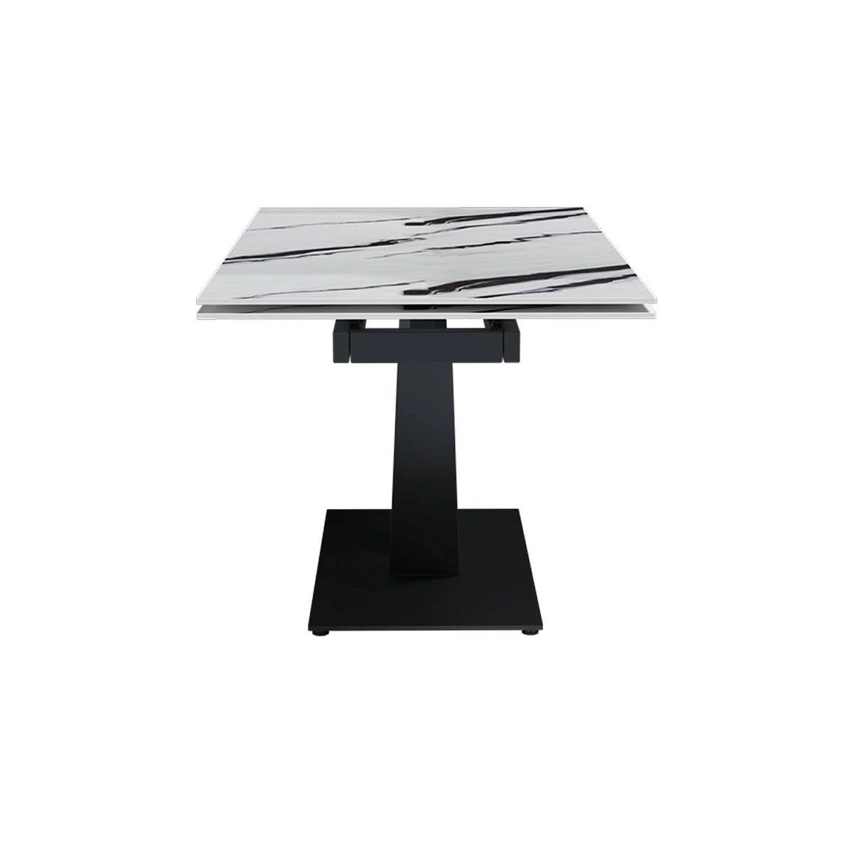Стол с керамической столешницей «Malibu» представляет собой изысканное и функциональное обеденное место для вашего дома. Поверхность столешницы, выполненная из керамики, обеспечивает прочность, легкость в уходе и устойчивость к царапинам и температурным изменениям. Стильное металлическое основание дарит стабильность и надежность, дополняя современный дизайн стола. Данный стол идеально подходит для семейных обедов и встреч с друзьями, создавая уютную и стильную обстановку в вашем доме. Столешница модели «Malibu» может быть как компактной по площади так и просторной благодаря наличию механизма трансформации.