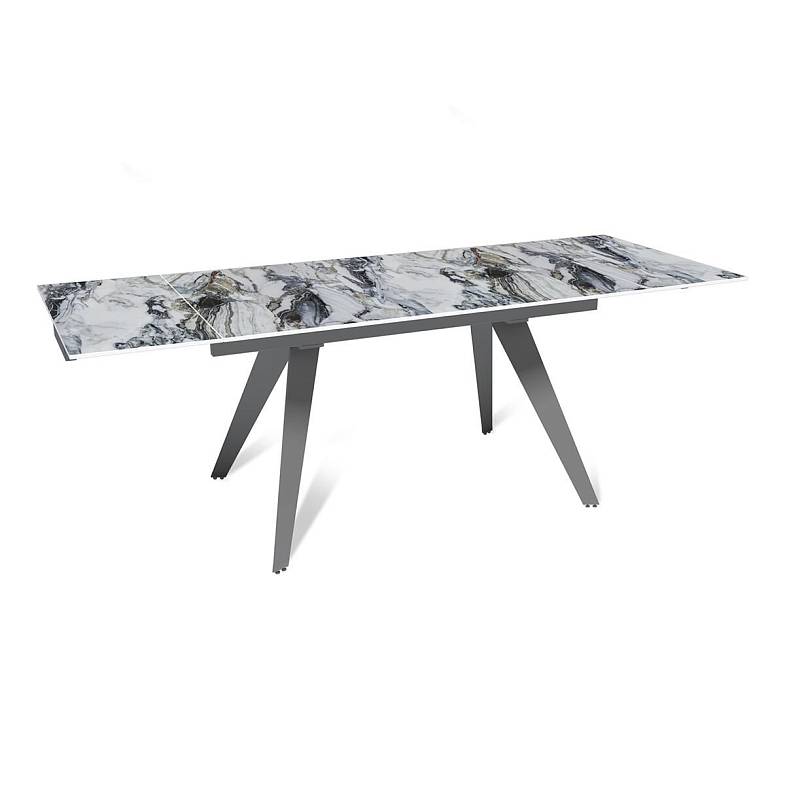 Стол с керамической столешницей «Rhein» представляет собой стильное и практичное решение для кухни или столовой. Поверхность столешницы, выполненная из керамики, обеспечивает прочность, легкость в уходе и устойчивость к царапинам и температурным изменениям. Стильное металлическое основание дарит стабильность и надежность, дополняя современный дизайн стола. Данный стол идеально подходит для семейных обедов и встреч с друзьями, создавая уютную и стильную обстановку в вашем доме. Столешница модели «Rhein» может быть как компактной по площади так и просторной благодаря наличию механизма трансформации.