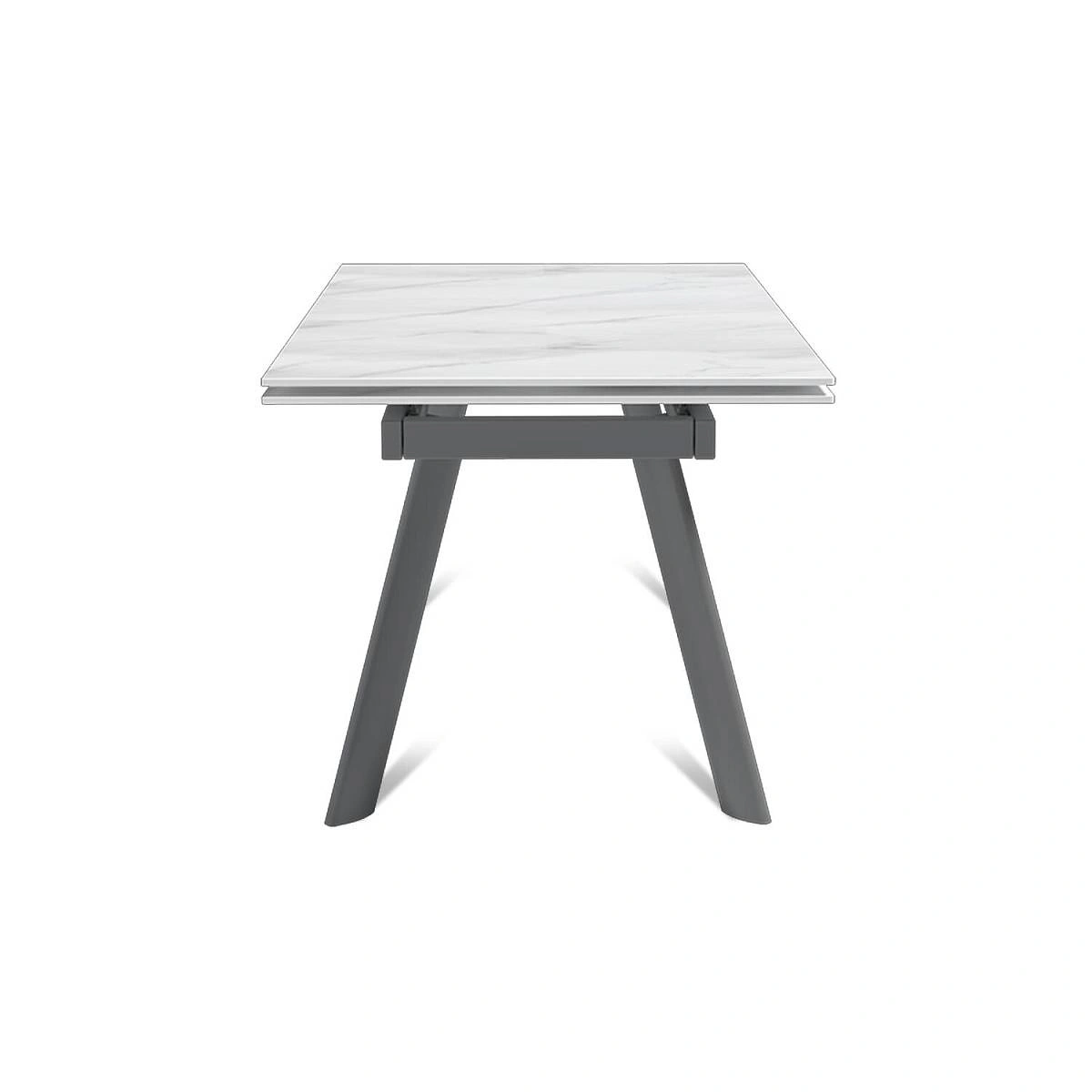 Стол с керамической столешницей «Stone» представляет собой изысканное и функциональное обеденное место для вашего дома. Модель отличается опорами, профиль которых выполнен в форме эллипса. Это обеспечивает безопасную эксплуатацию стола и исключает возможность ударов об острые углы. Поверхность столешницы, выполненная из керамики, обеспечивает прочность, легкость в уходе и устойчивость к царапинам и температурным изменениям. Данный стол идеально подходит для семейных обедов и встреч с друзьями, создавая уютную и стильную обстановку в вашем доме. Столешница модели «Stone» может быть как компактной по площади, так и просторной благодаря наличию механизма трансформации.