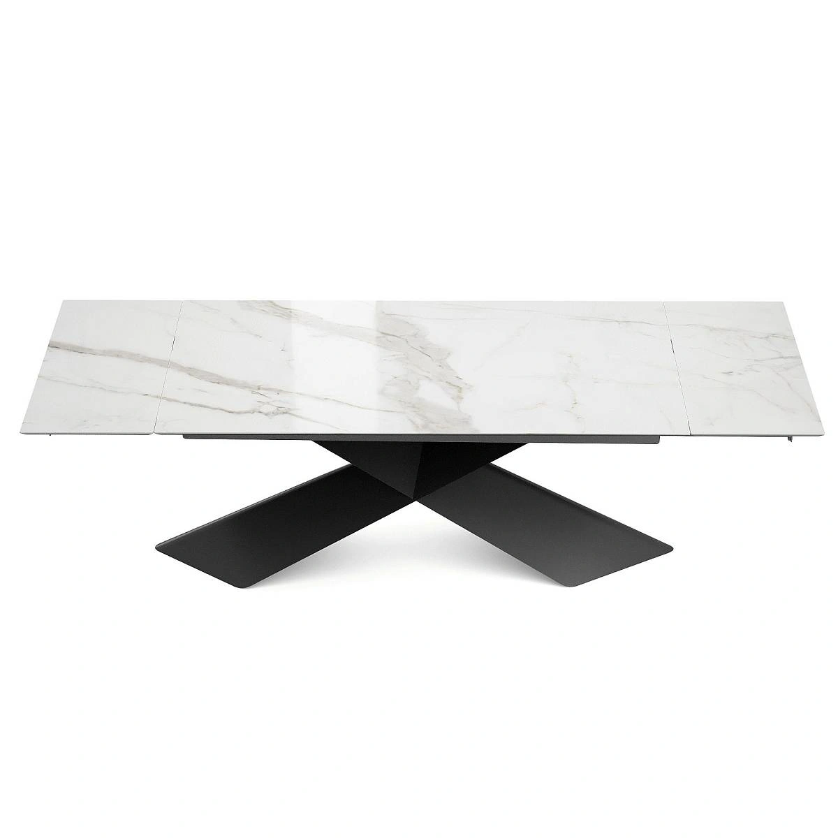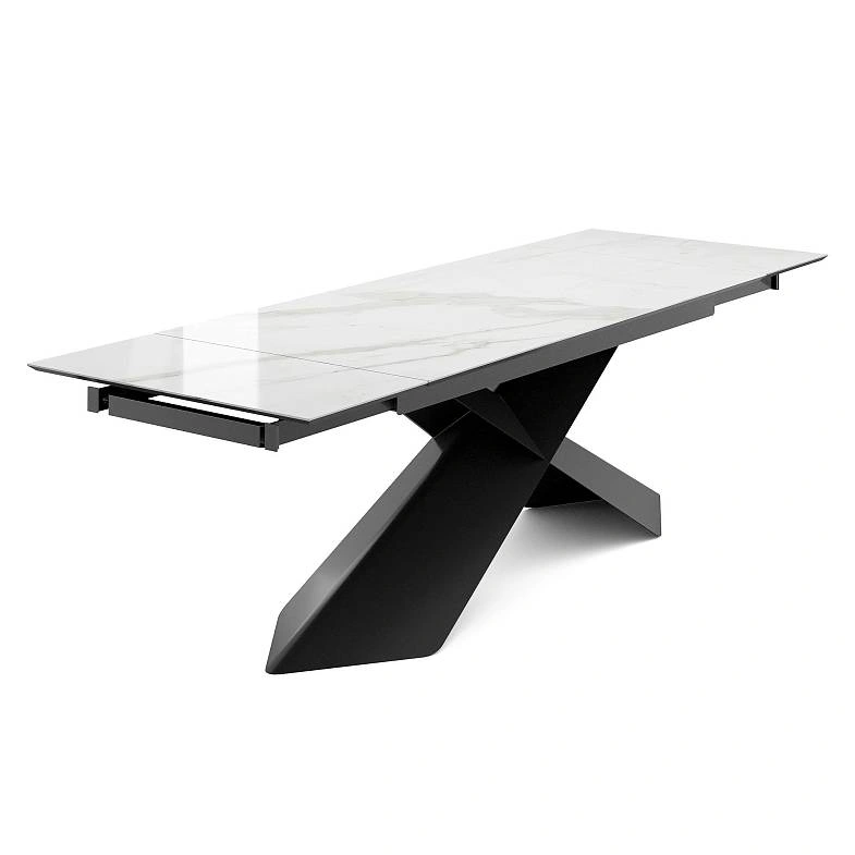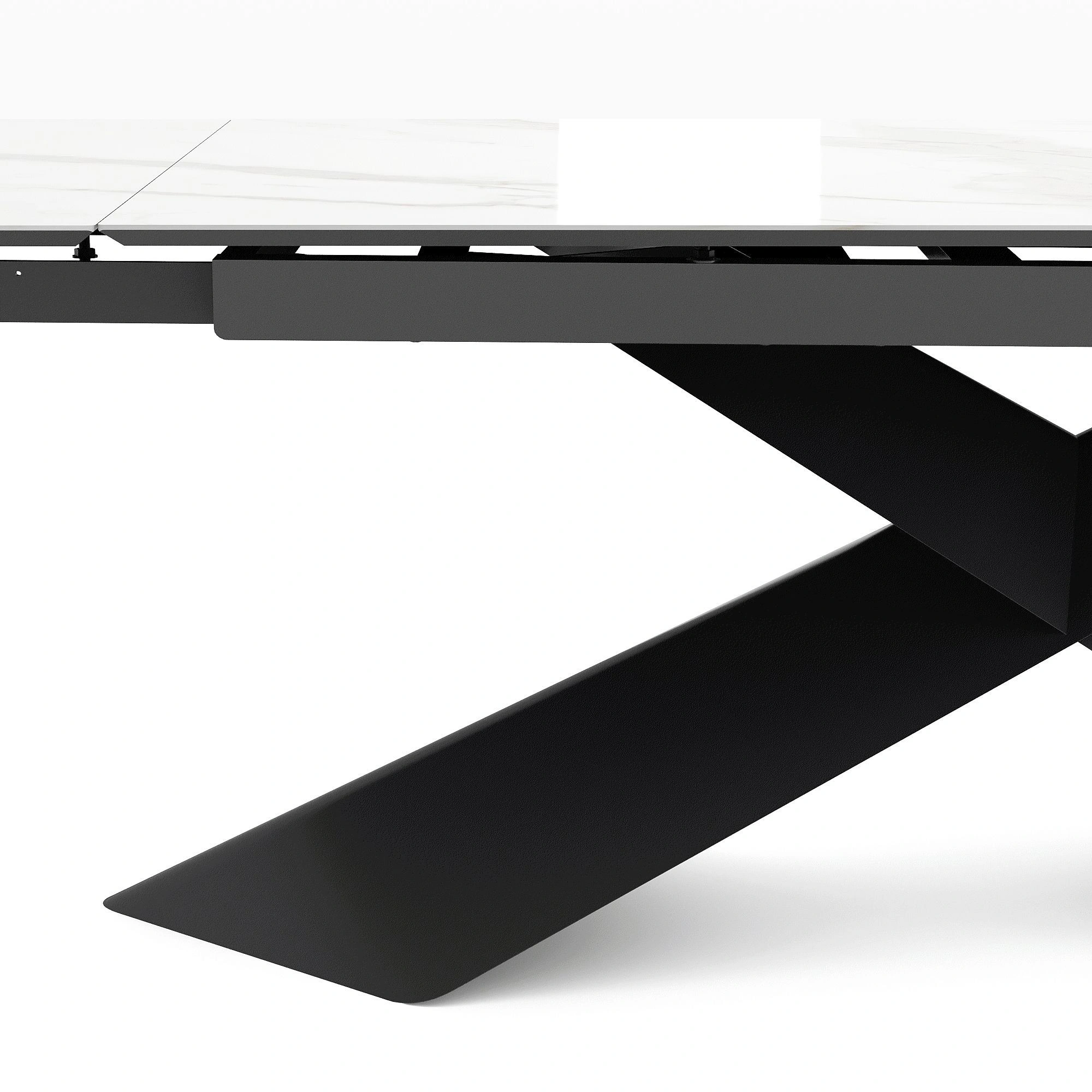 Раскладной стол Tyler выглядит смело и оригинально. Черные металлические ножки являются центральным элементом, притягивают внимание своей необычной изогнутой формой и четкой геометрией. При этом опоры обеспечивают непревзойденную устойчивость.
