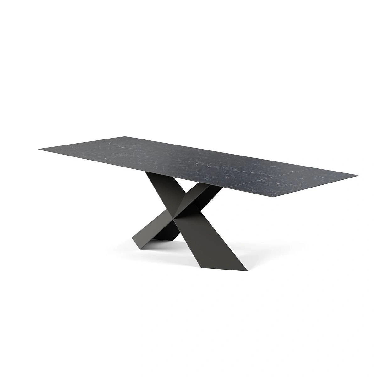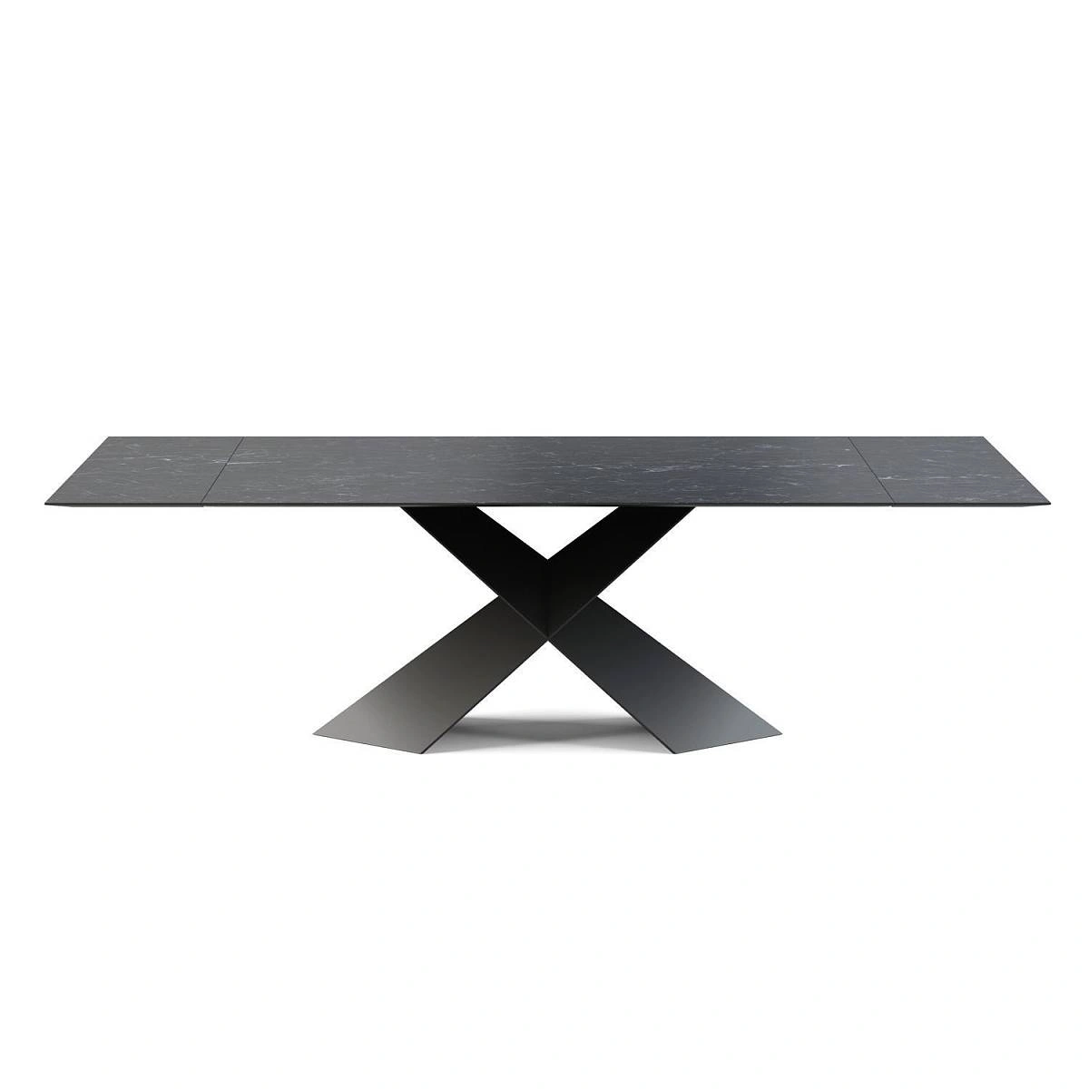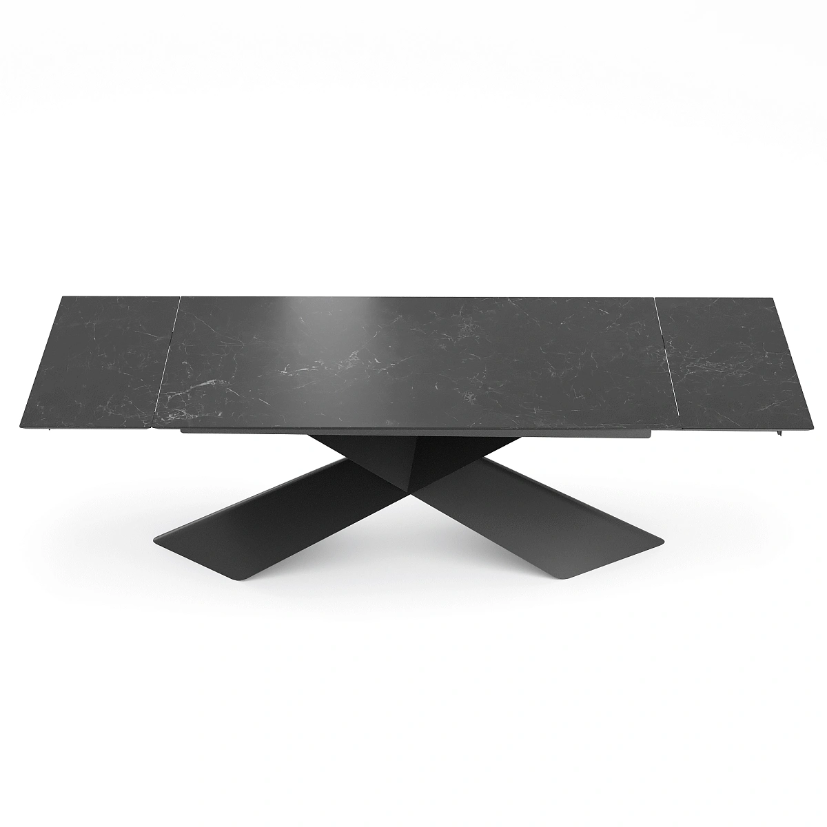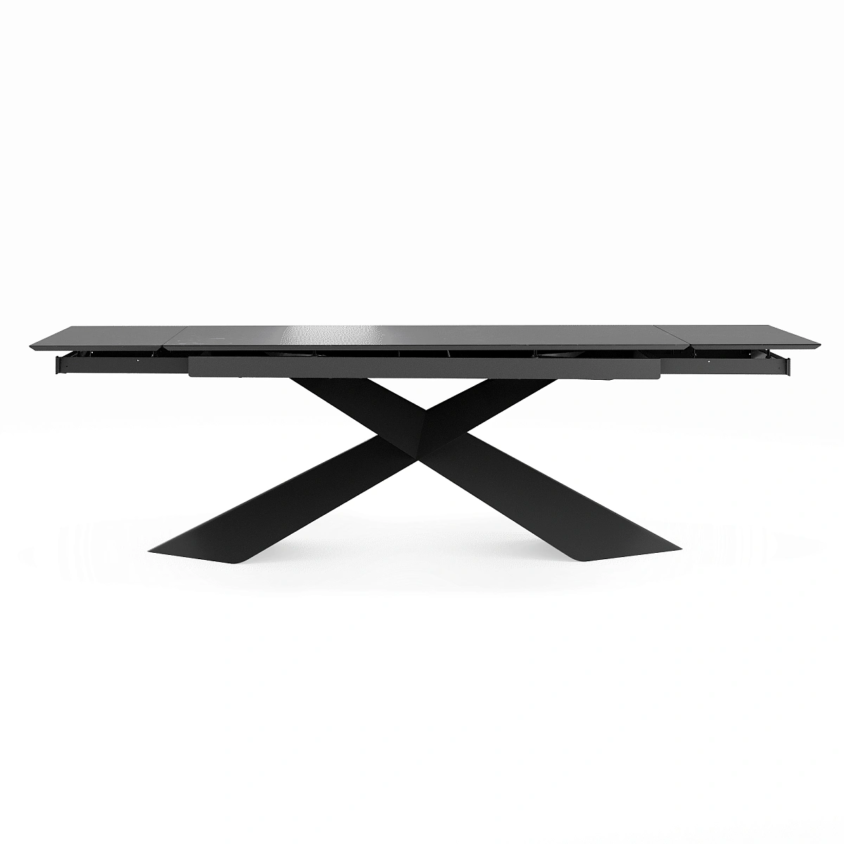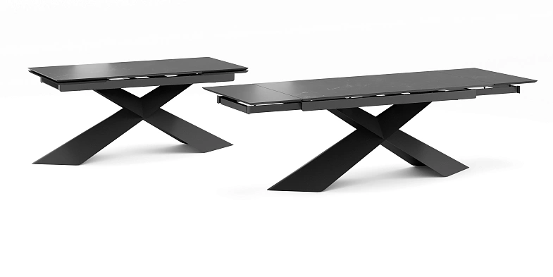 Раскладной стол Tyler выглядит смело и оригинально. Черные металлические ножки являются центральным элементом, притягивают внимание своей необычной изогнутой формой и четкой геометрией. При этом опоры обеспечивают непревзойденную устойчивость.
