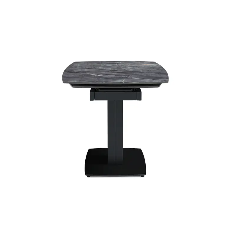 Столешница выполнена из износостойкой керамики, устойчивой к высоким температурам, влаге и царапинам. Она эффектно имитирует фактуру камня и сохраняет безупречный вид при ежедневном использовании.