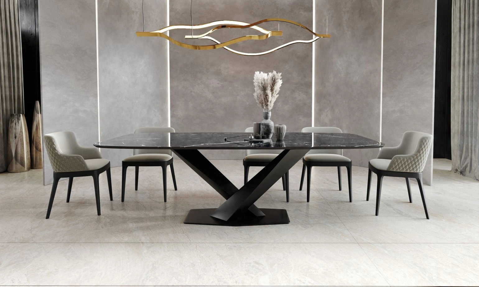 Стол Toros 230 овальный, интегрированная керамика глянцевая, шампань