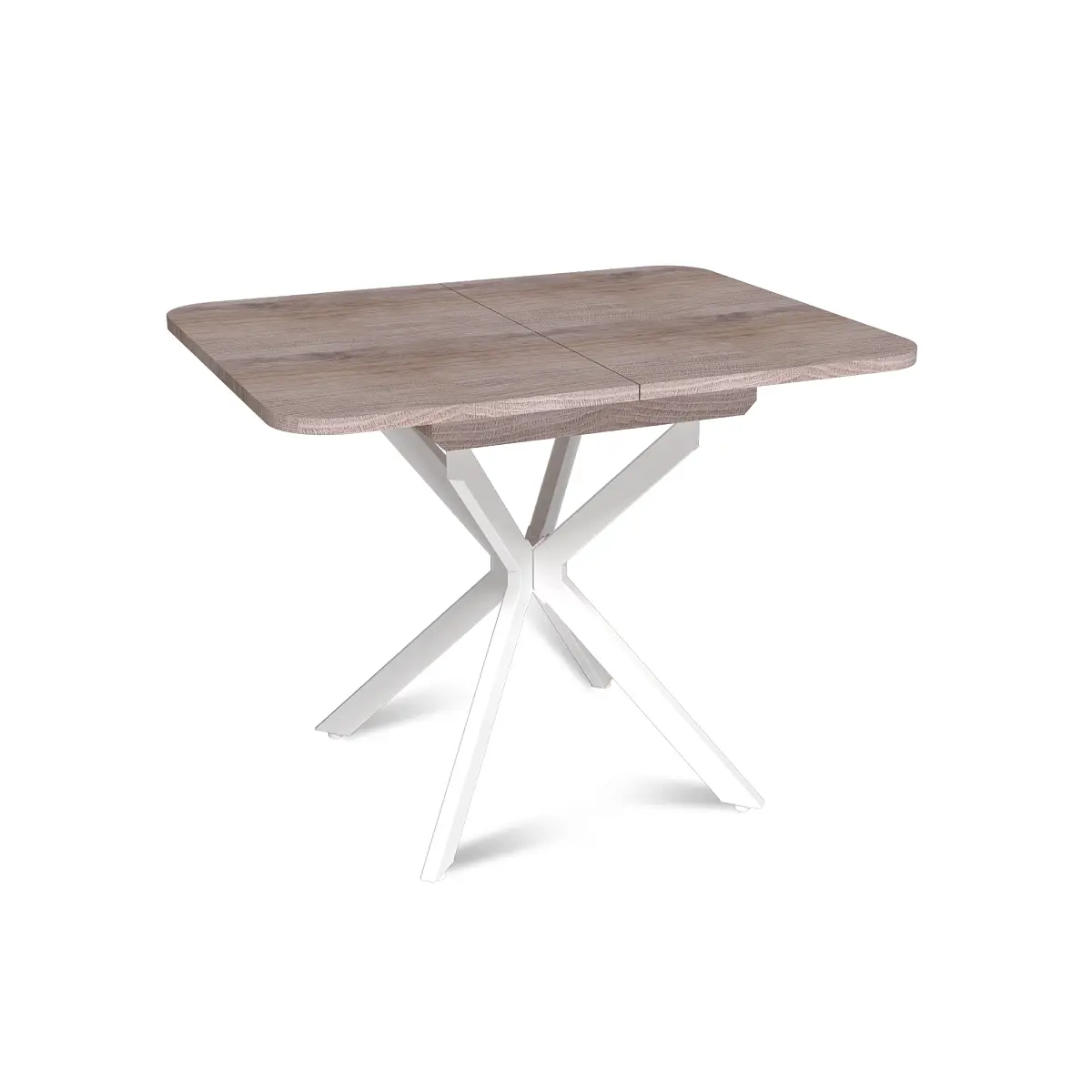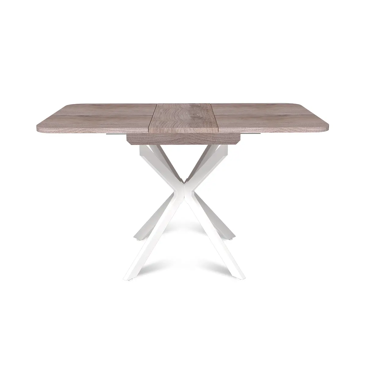 Стол Твист раздвижной (100+30) дуб эндгрейн / опоры белые