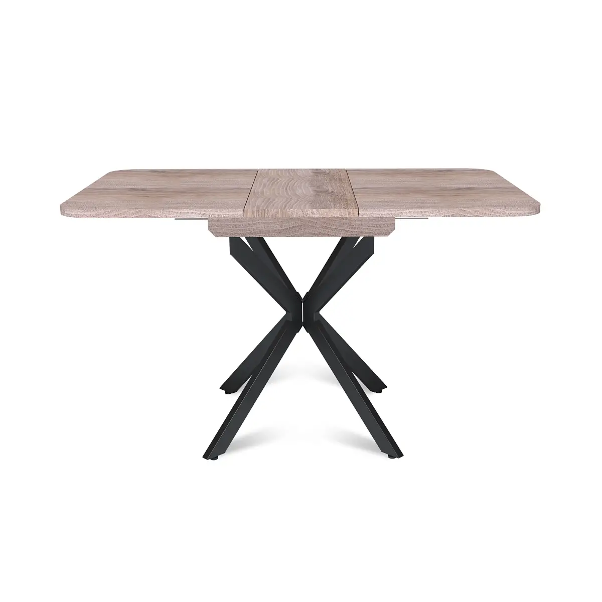 Стол Твист раздвижной (100+30) дуб эндгрейн / опоры черные