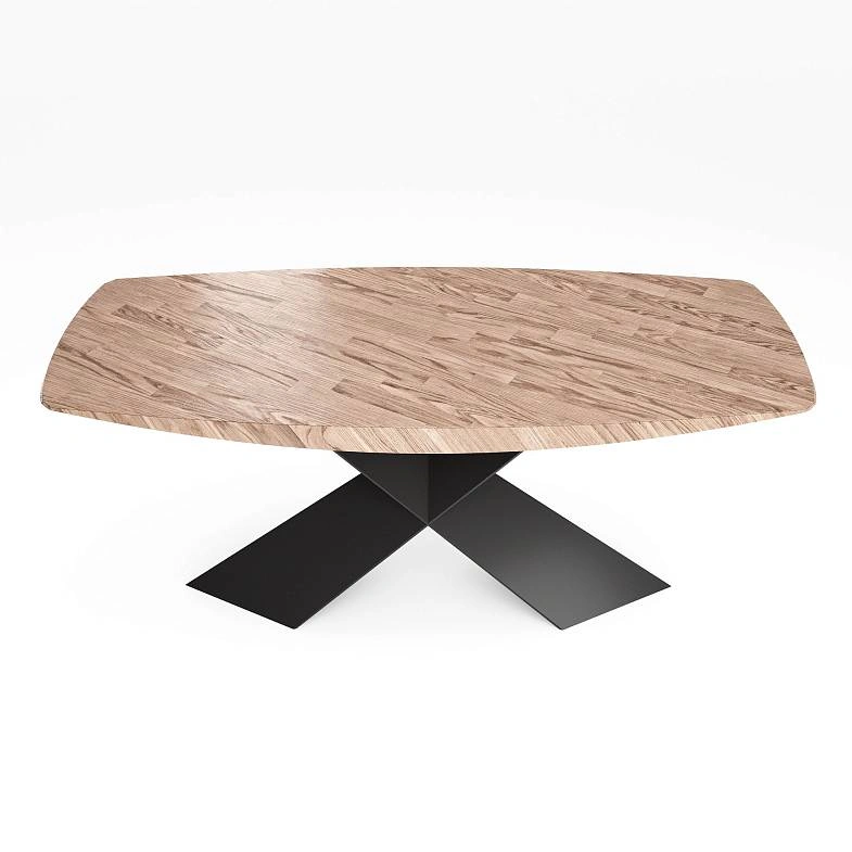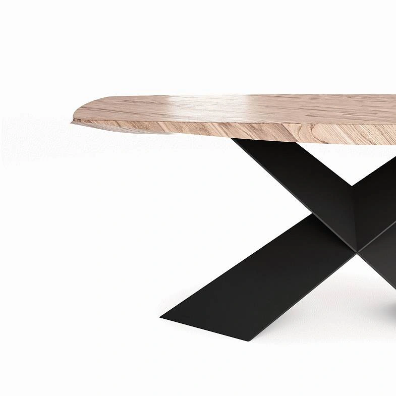 Стол Tyler имеет овальную форму столешницы, которая не раздвигается. Столешница изготовлена из МДФ толщиной 40 мм и покрыта натуральным шпоном толщиной 1 мм. Натуральный шпон придает столу природный и теплый вид дерева, а также делает его более прочным и стойким к повреждениям.