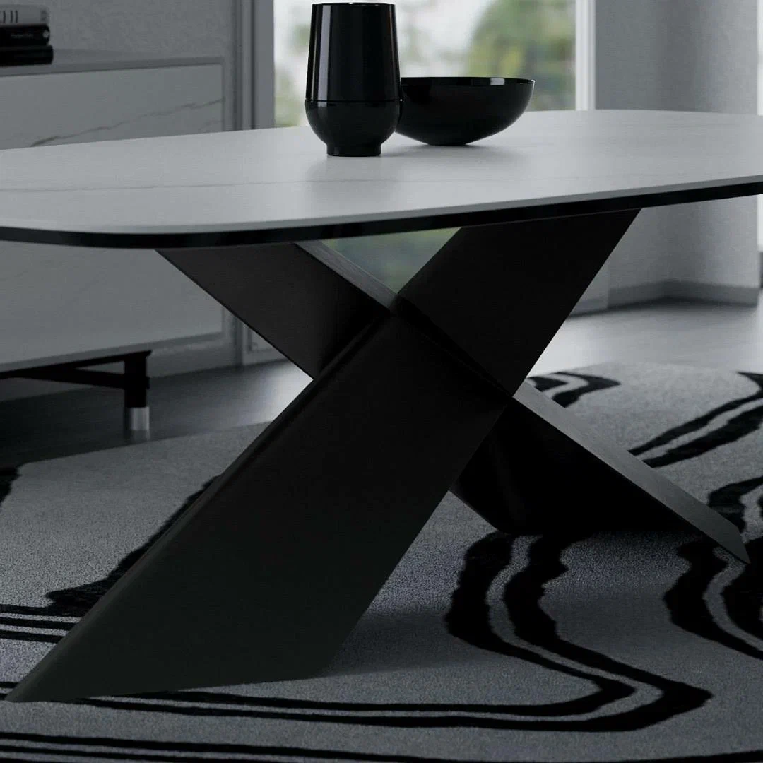 Овальный стол Tyler выглядит смело и оригинально. Черные металлические ножки являются центральным элементом, притягивают внимание своей необычной изогнутой формой и четкой геометрией. При этом опоры обеспечивают непревзойденную устойчивость.
