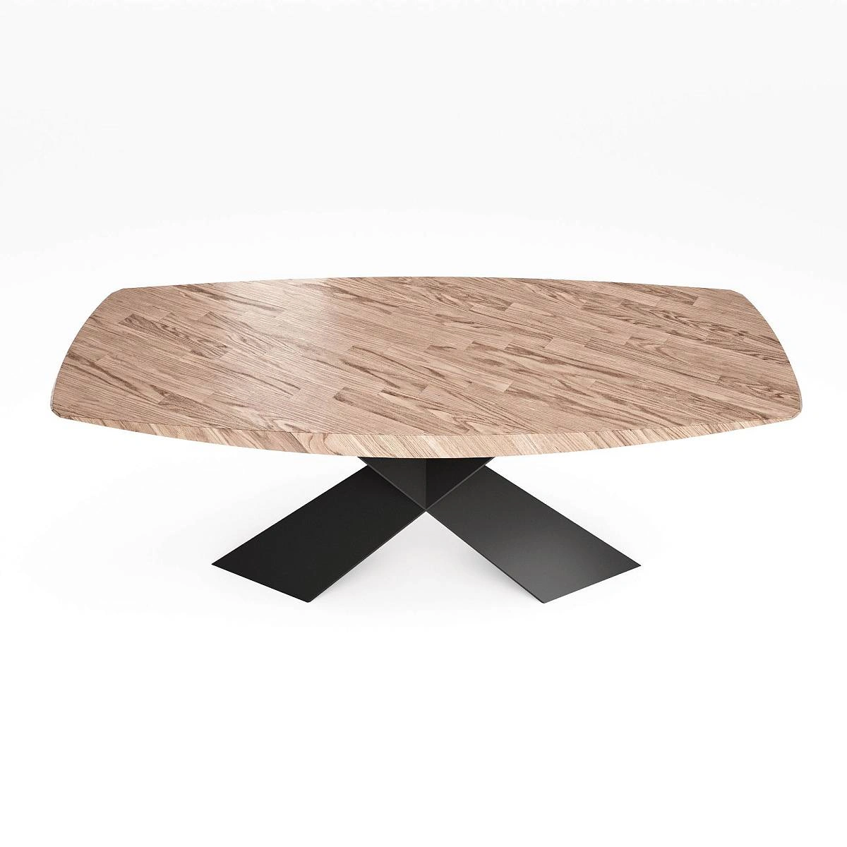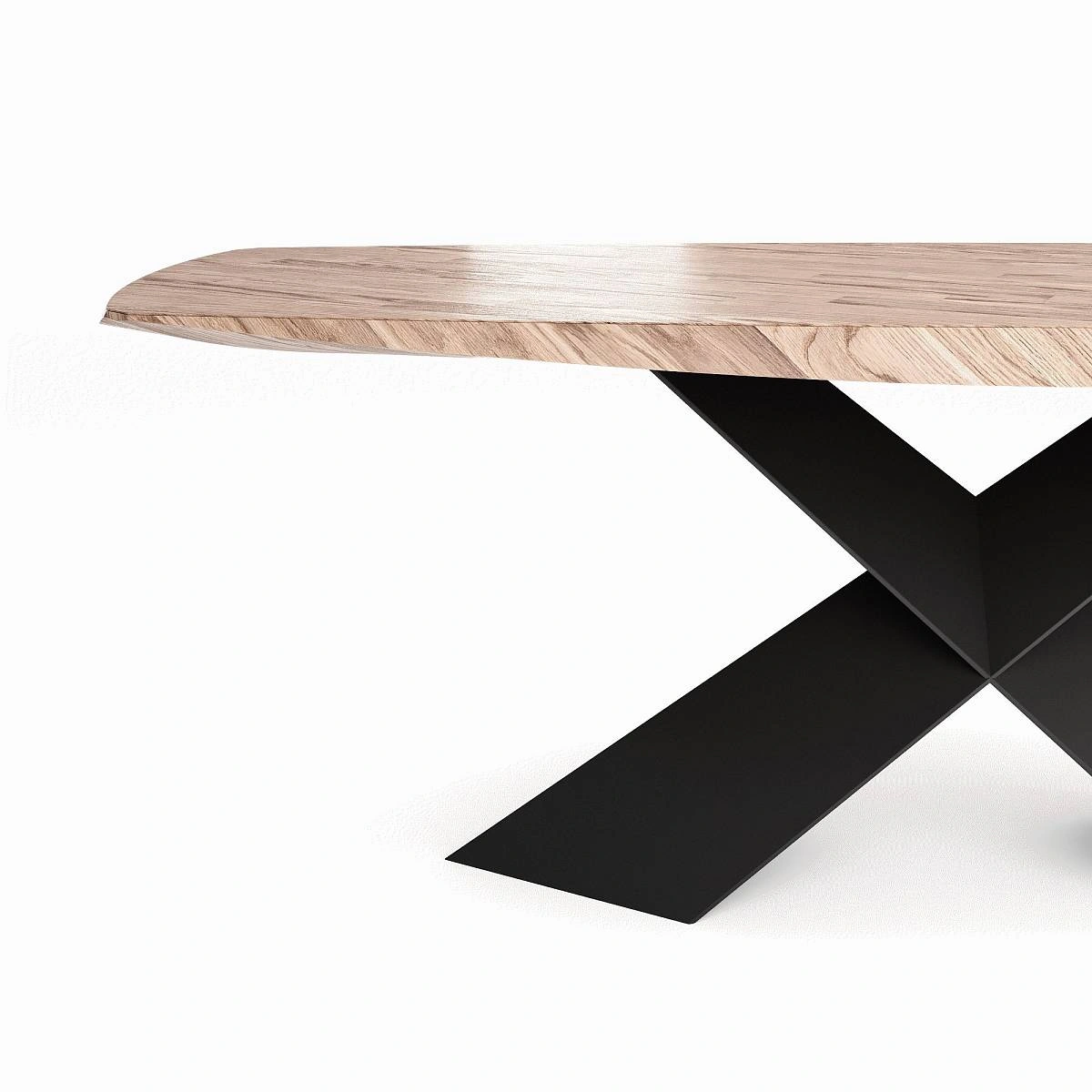 Стол Tyler имеет овальную форму столешницы, которая не раздвигается. Столешница изготовлена из МДФ толщиной 40 мм и покрыта натуральным шпоном толщиной 1 мм. Натуральный шпон придает столу природный и теплый вид дерева, а также делает его более прочным и стойким к повреждениям.