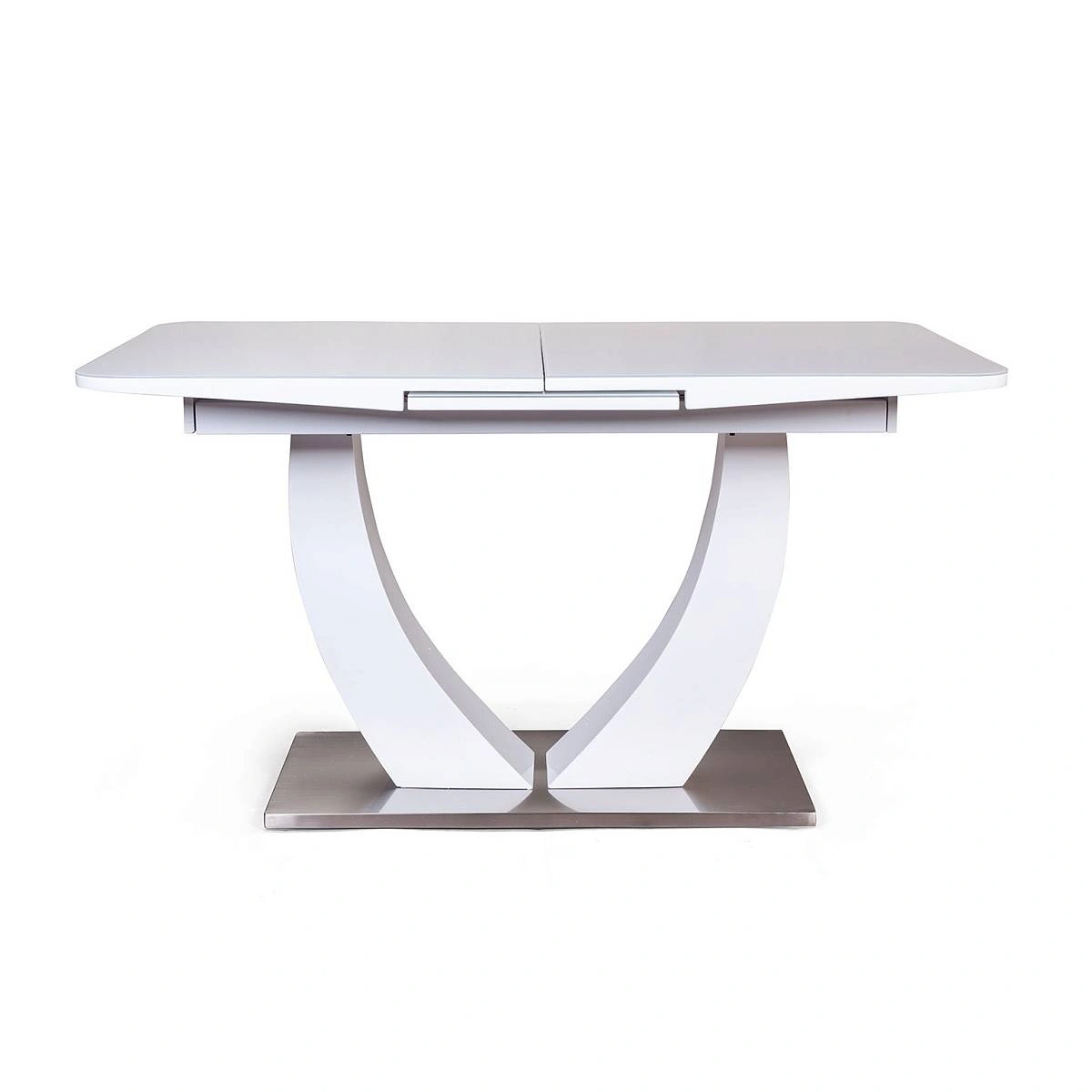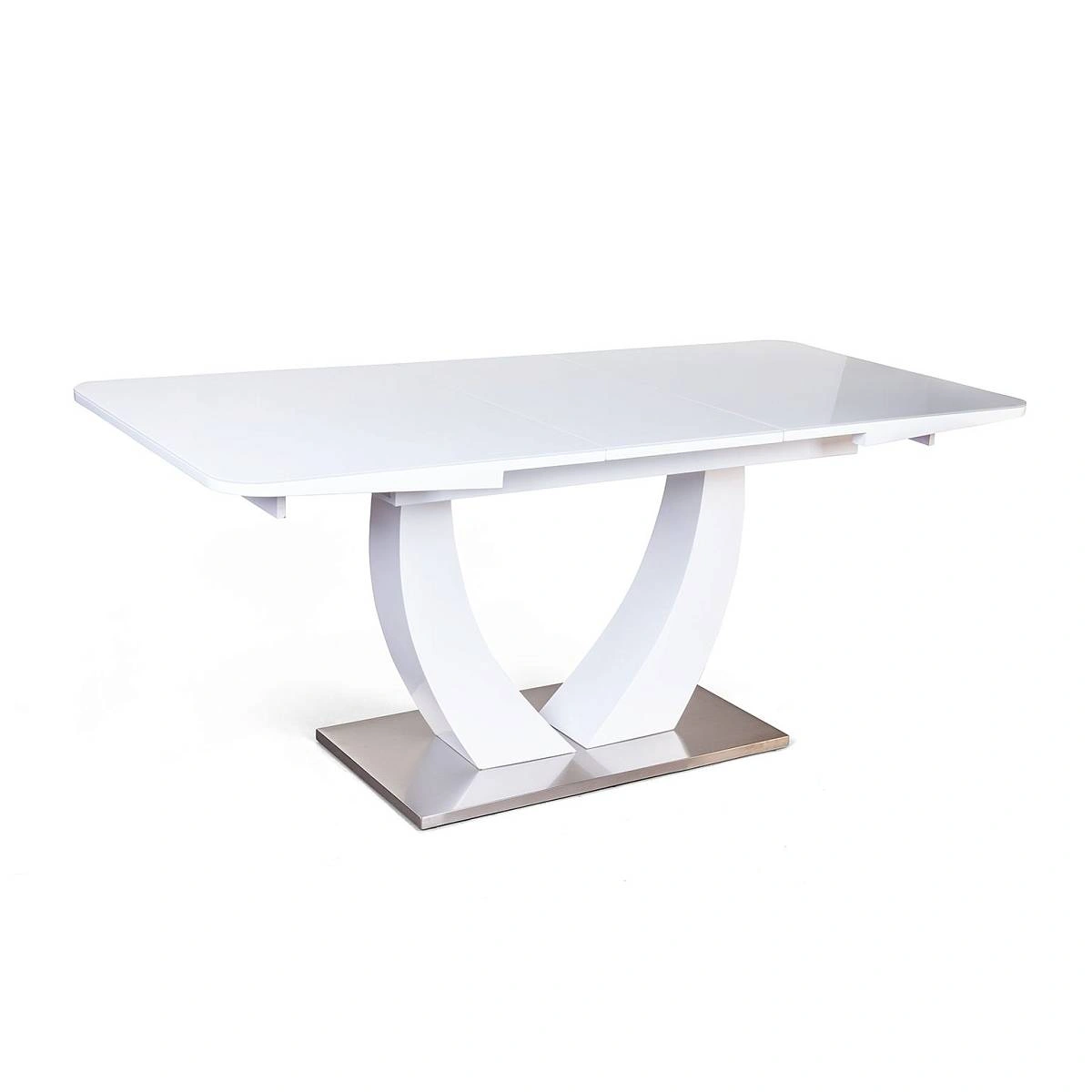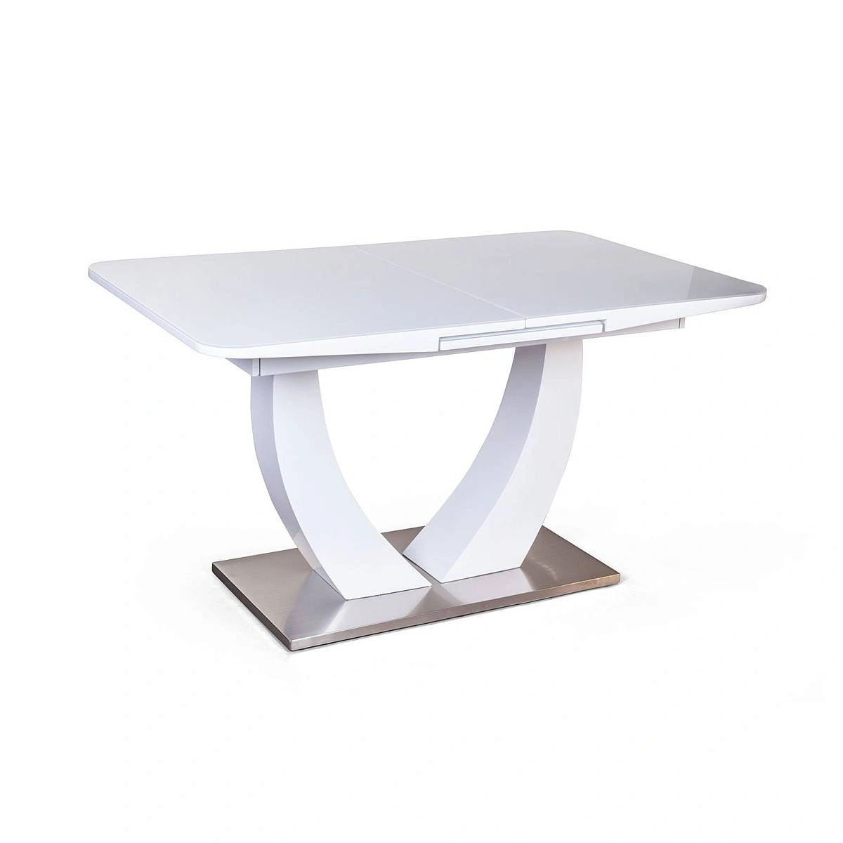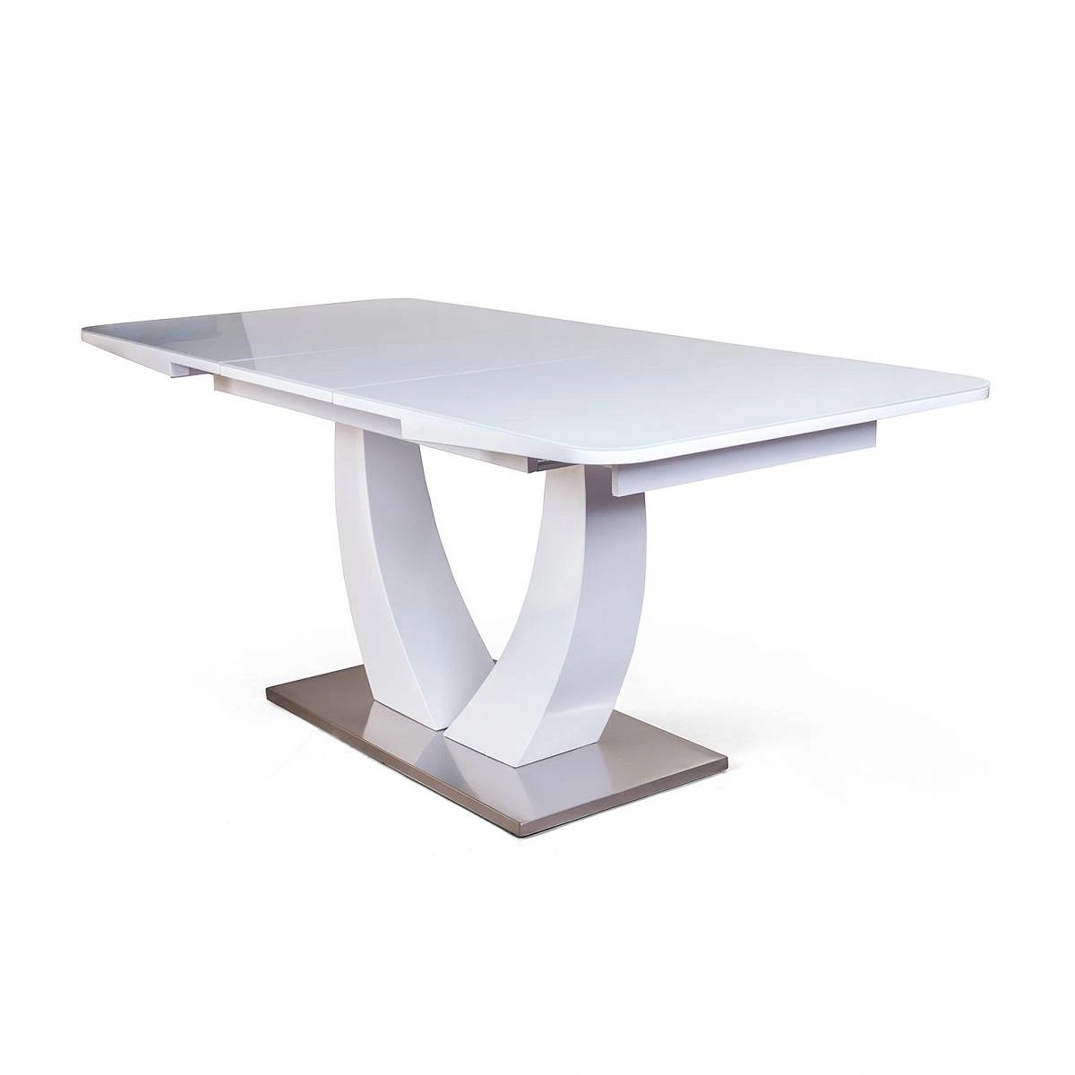 Основательный, надежный обеденный стол Adams выполнен в современном дизайне. Невероятно стильный образ белоснежного стола создается благодаря закругленным углам столешницы, плавным очертаниям V-образного пьедестала на платформе из нержавеющей стали и сиянию глянцевой столешницы.