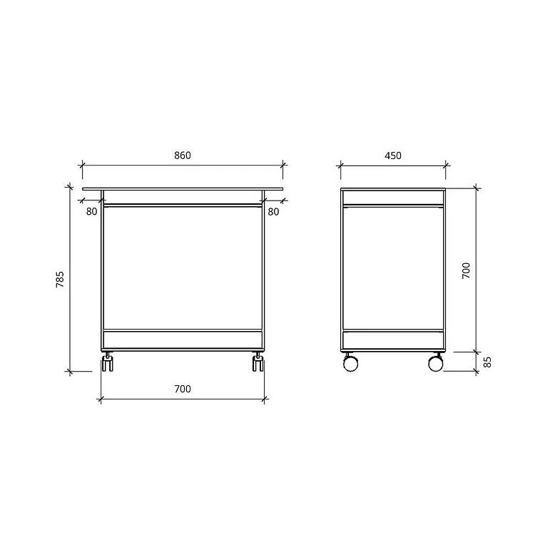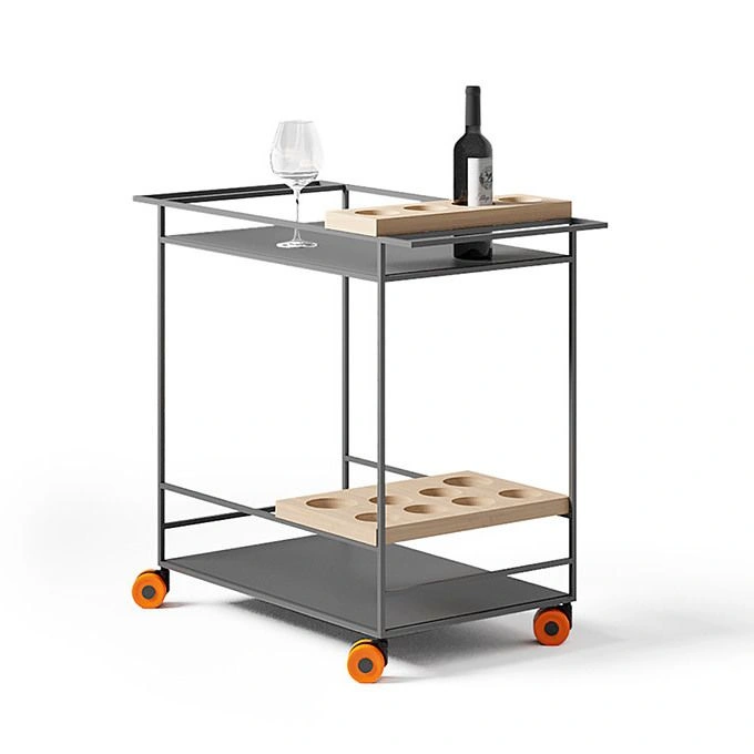 Сервировочный стол Serve — стильное и функциональное решение для дома. Металлический каркас доступен в трех цветах: белый, темно-серый и черно-серый. Возможна покраска каркаса в любой оттенок RAL. Полки из износостойкой компакт-плиты. Столик оснащен алюминиевыми оранжевыми колесиками с тормозом.